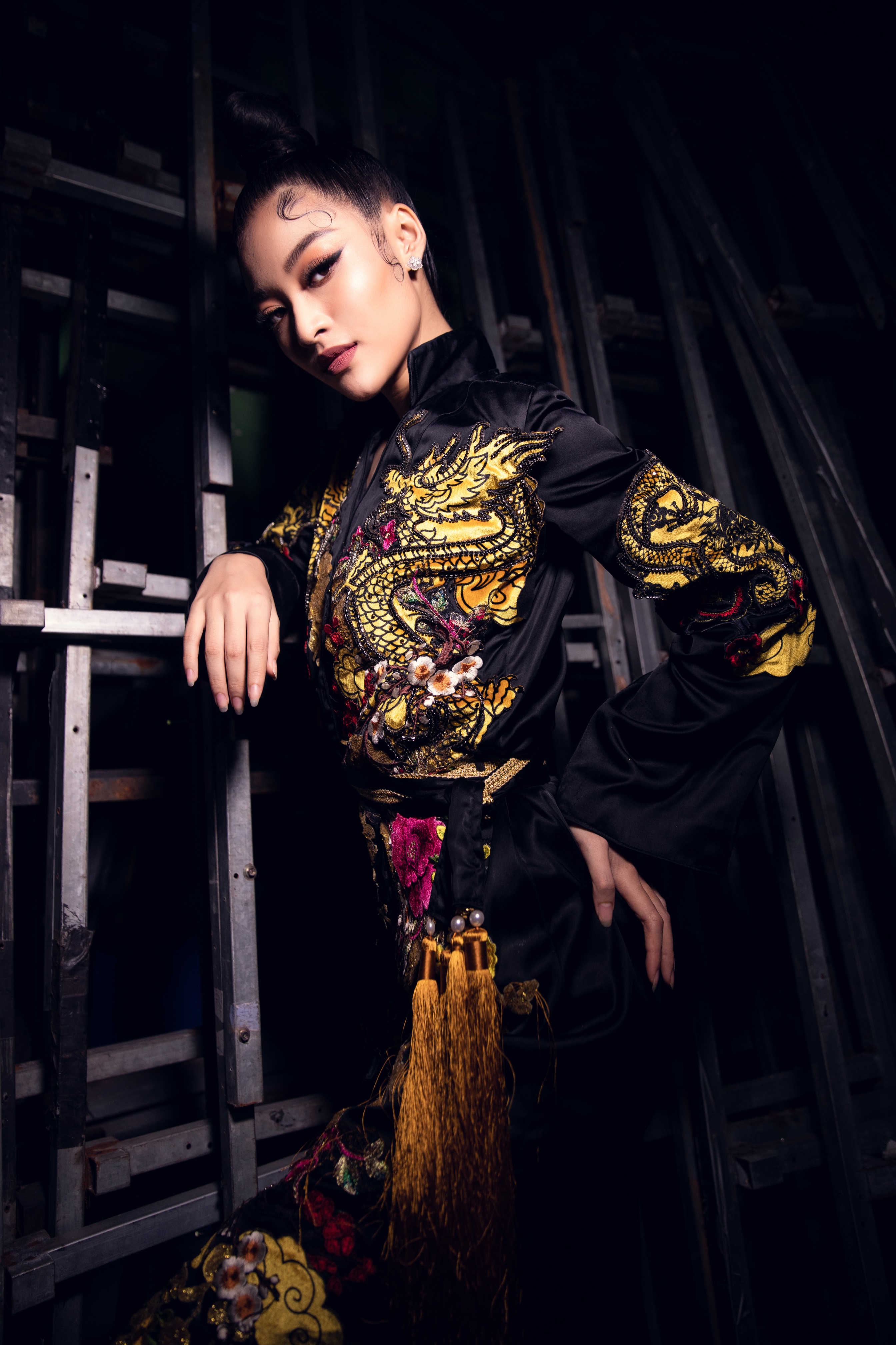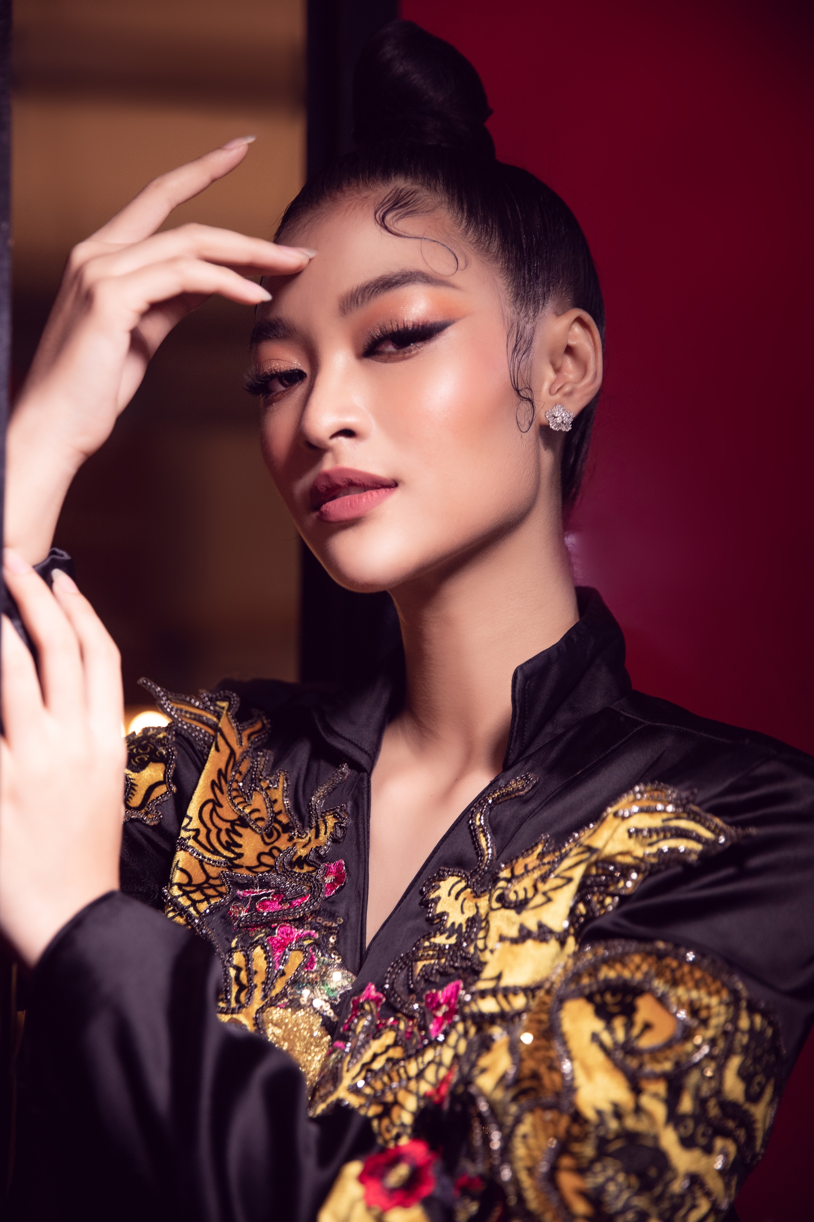 Với layout make-up đậm sắc sảo, Tiểu Vy thể hiện thần thái sắc lạnh và thu hút.