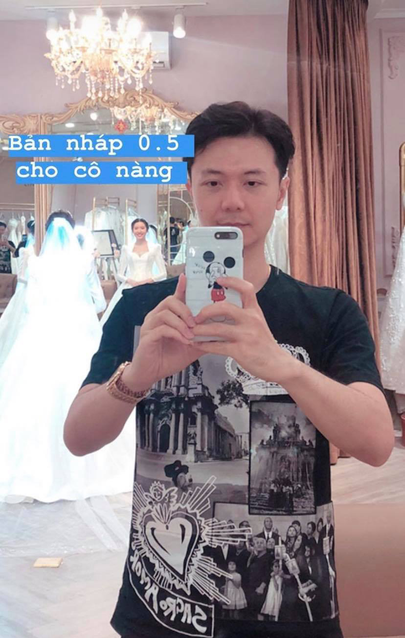 Hình ảnh ông xã Nhật Vũ chụp lén cảnh Thúy Vân thử váy cưới khiến fan nôn nóng chờ đám cưới cổ tích của cặp đôi.