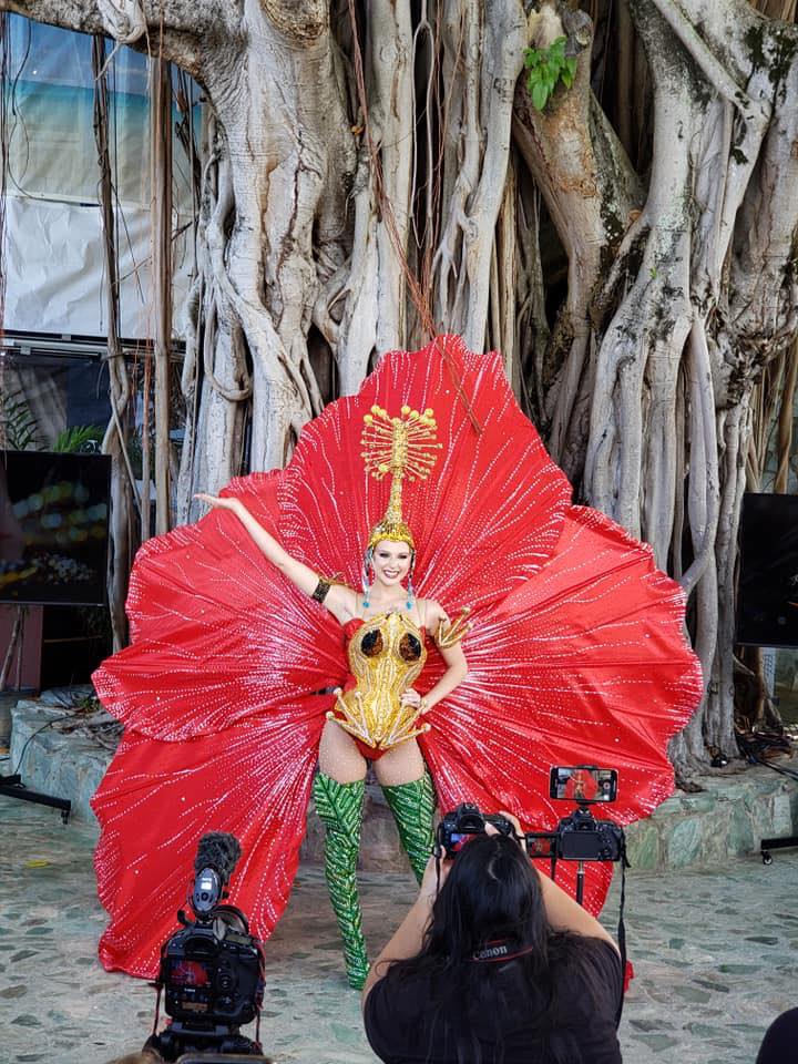 Mới đây, đại diện Puerto Rico vừa giới thiệu với khán giả bộ trang phục dân tộc sẽ mang đến đấu trường nhan sắc Miss Universe 2019 được lấy cảm hứng từ loài hoa dâm bụt, cường điệu hoá trở nên khổng lồ để tăng sự bắt mắt. Hiệu ứng xòe cánh hoành tráng và đẹp mắt cùng với màu đỏ gây sự chú ý khiến mỹ nhân Puerto Rico trở nên vô cùng nổi bật.