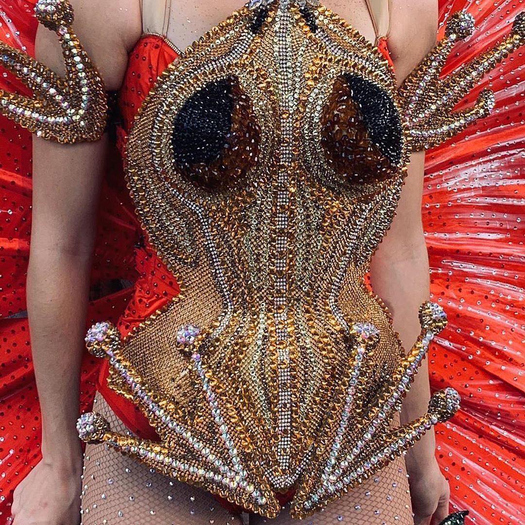 Bên cạnh đó, các chi tiết trên bộ National Costume của đại diện Puerto Rico được đính kim sa lấp lánh tỉ mỉ từ phần cánh hoa, quần áo, giày dép đến chiếc mũ tạo hình giống nhuỵ hoa cũng được đầu tư kì công để tăng hiệu ứng trên sân khấu khi trình diễn.