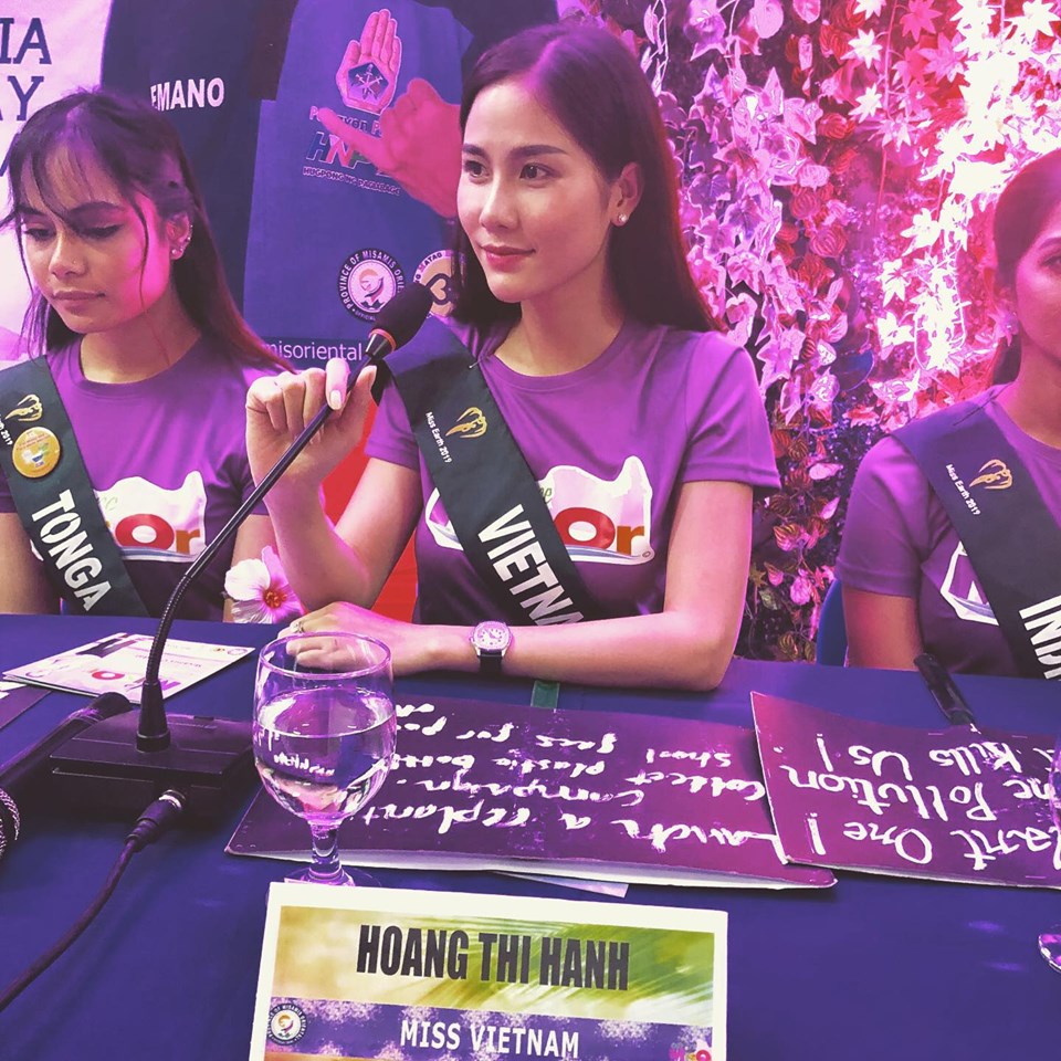 Trong đêm trình diễn thời trang Bea Bianca Collection tại tỉnh Misamis Oriental nằm trong khuôn khổ của cuộc thi, Hoàng Hạnh được phóng viên nước ngoài đề nghị giới thiệu một sự kiện sắp diễn ra đến khán giả thì người đẹp lại không hiểu và giới thiệu bản thân của mình. Trước đó, người đẹp đã trao đổi với phóng viên rằng trình độ tiếng Anh không tốt và gửi nụ cười rạng rỡ như một lời xin lỗi.