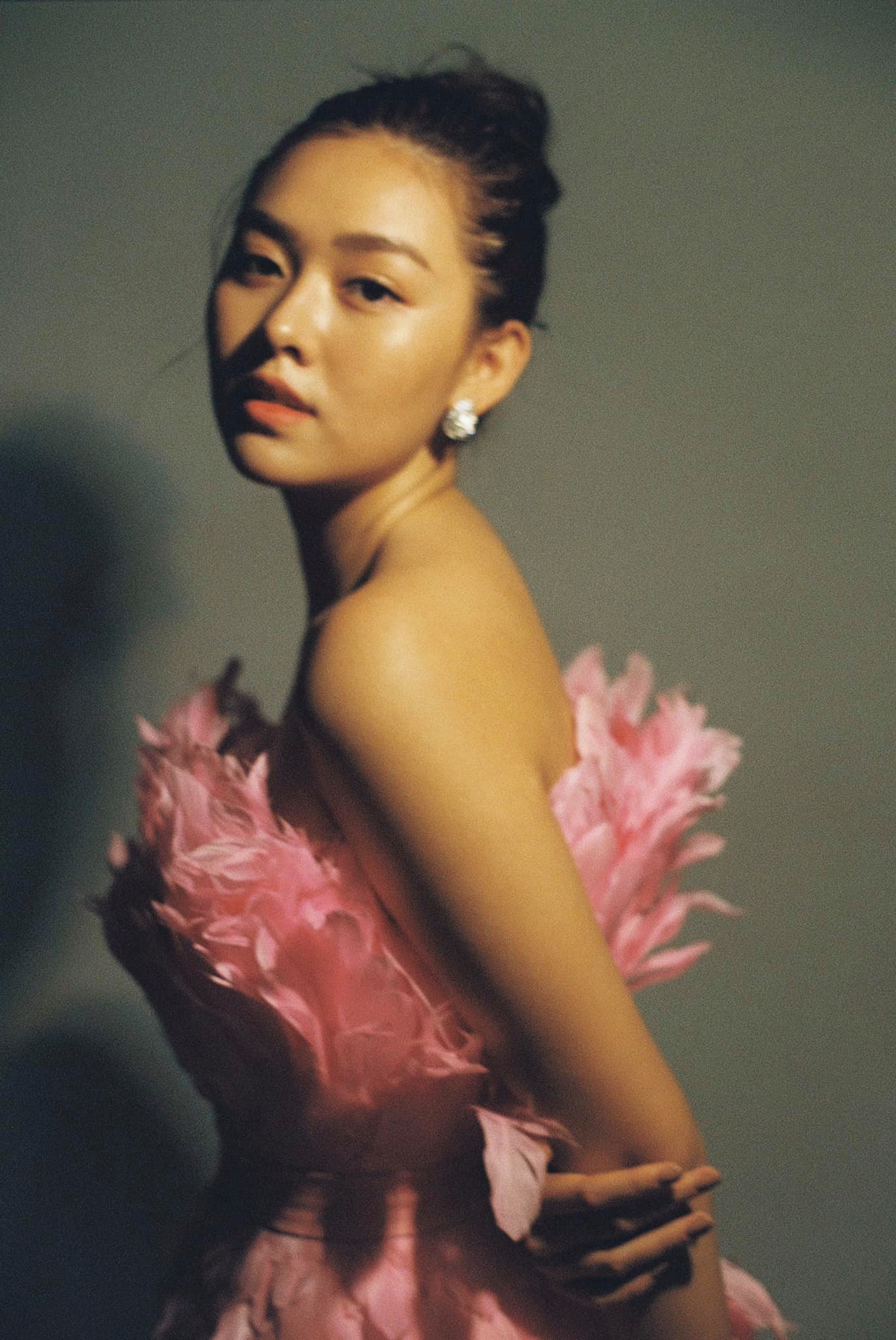 Đỗ Mỹ Linh không chỉ toát lên vẻ đẹp hoang dã như loài hồng hạc mà còn mang đậm nét sang trọng, quyến rũ của một nàng hậu tuổi 24.