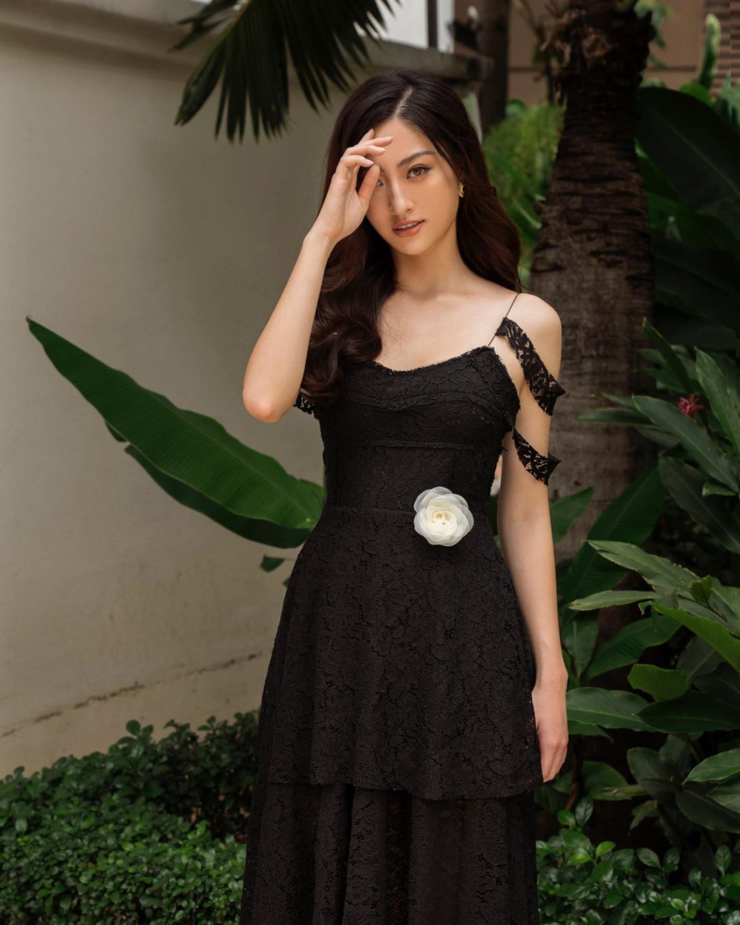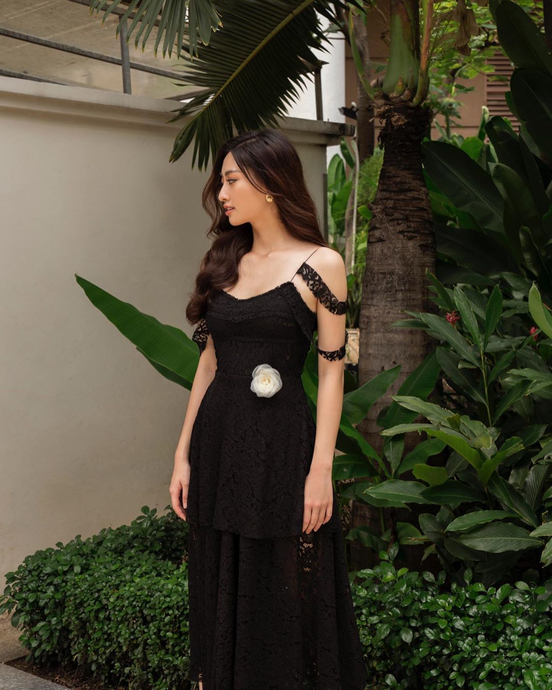 Lương Thùy Linh diện váy ren đen huyền bí. Cô nàng gợi cảm khi để lộ vai trần quyến rũ.