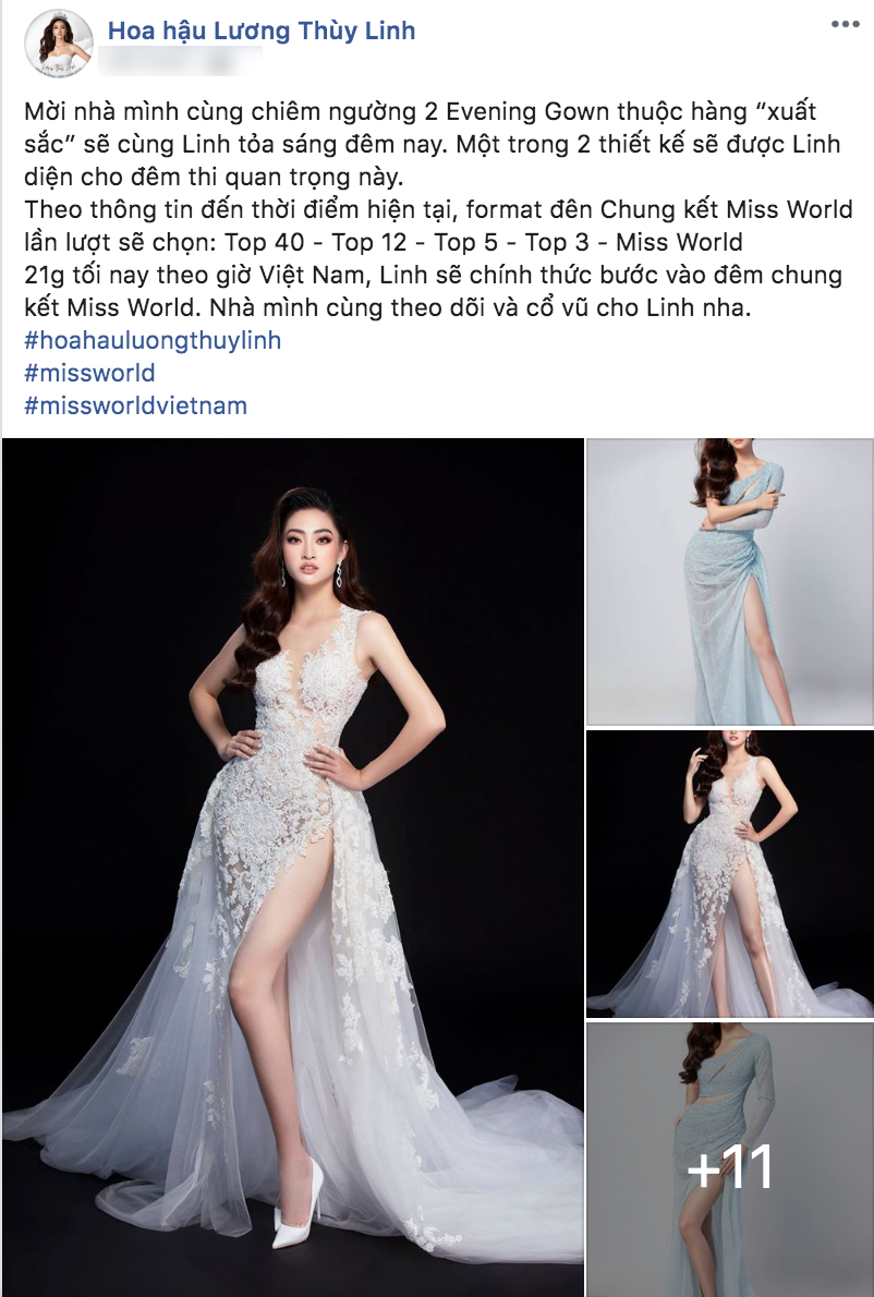 Mới đây, Lương Thùy Linh đã giới thiệu đến khán giả 2 mẫu trang phục dạ hội thuộc hàng “xuất sắc” mà cô nàng sẽ diện trong đêm Chung kết Hoa hậu Thế giới. Chia sẻ của Miss World Vietnam 2019 nhận được sự quan tâm và tương tác lớn.