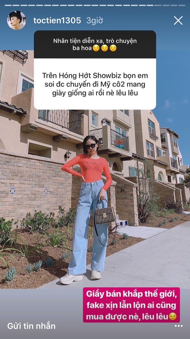 Sở hữu gu thời trang sành điệu, Tóc Tiên nô đùa với fans khi bị phát hiện mang giày đôi với Touliver cho 1 chuyến lưu diễn.