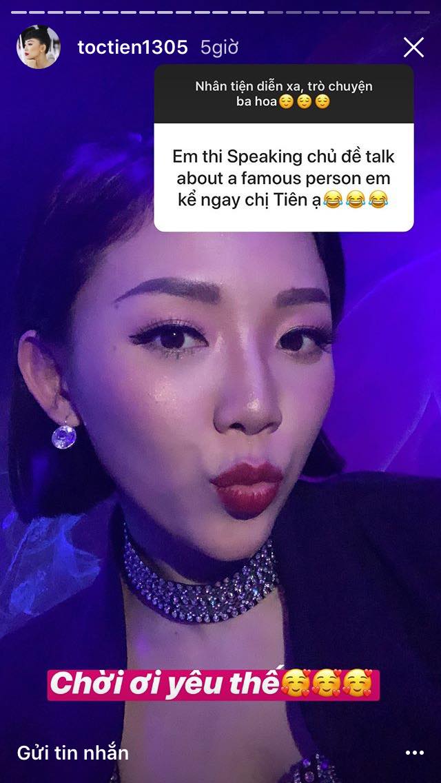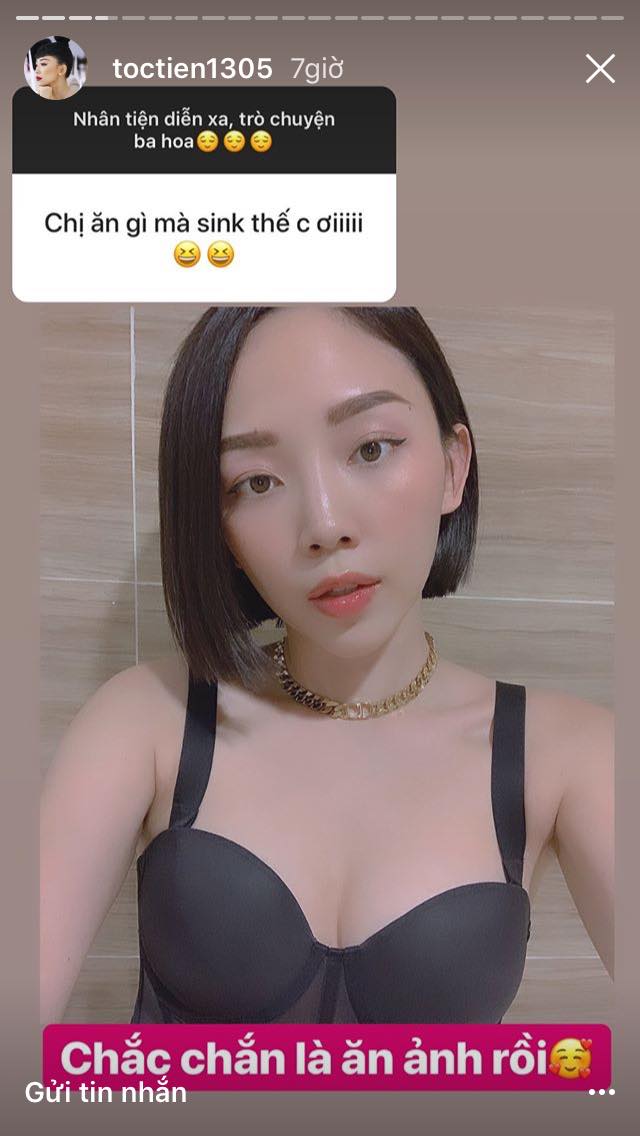 Không nhận rằng mình là người xinh đẹp, khi được hỏi chia sẻ lí do ăn gì mà xinh thế. Tóc Tiên tự nhận mình chỉ người ăn ảnh.
