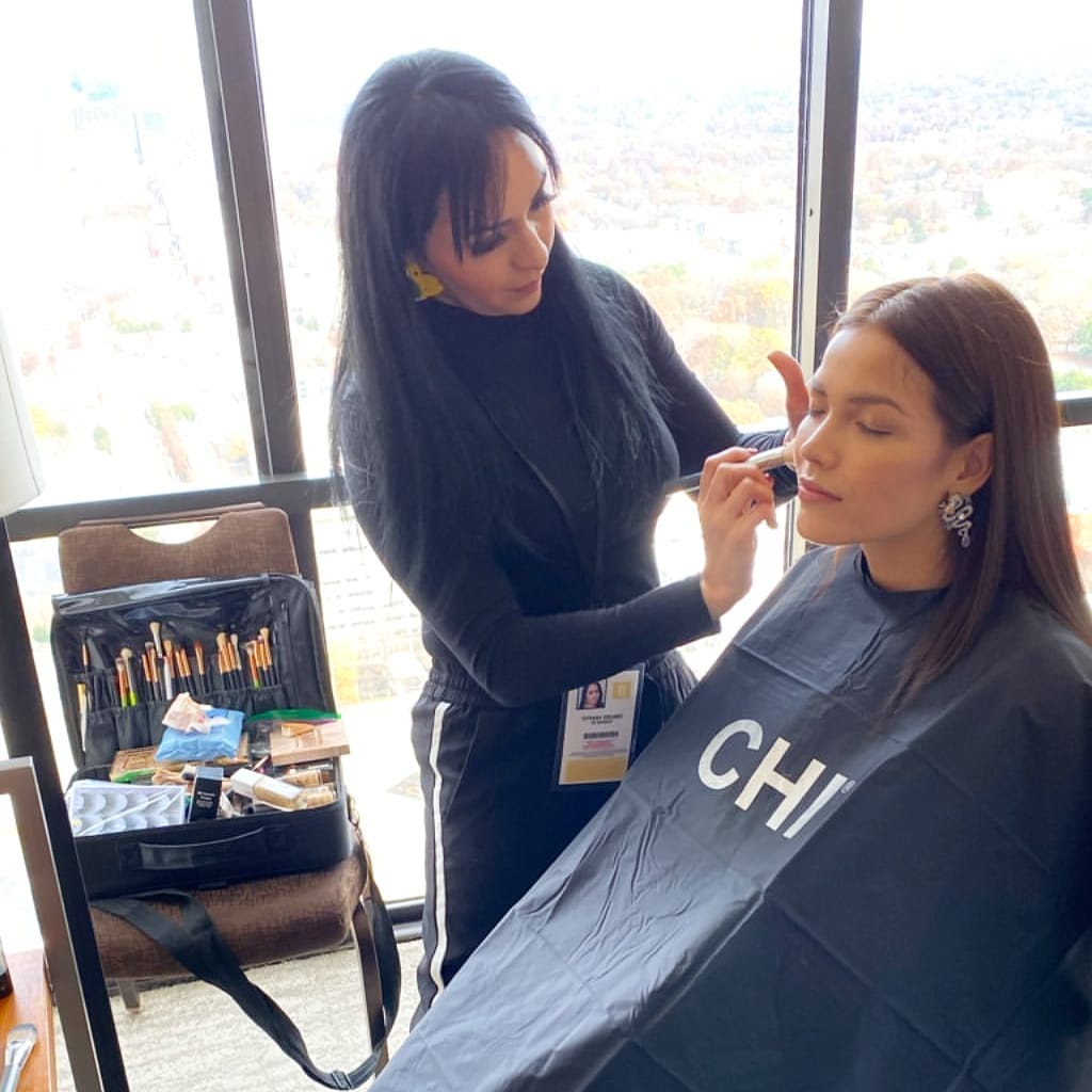 Không những vậy, thay vì phải xuống sảnh tập trung để được trang điểm, làm tóc, thậm chí phải tự chuẩn bị như đại diện Việt Nam - Hoàng Thùy, cho buổi ghi hình thì người đẹp Thái Lan - Fahsai lại được ban tổ chức ưu ái, cho phép 2 chuyên viên đến tận phòng riêng để hỗ trợ cho cô nàng.