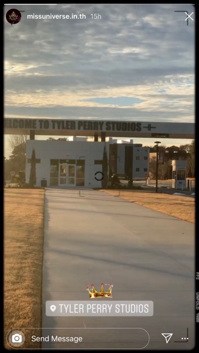 Trang Instgram của Miss Universe Thailand đăng tải hình ảnh tại phim trường Tyler Perry trên story.