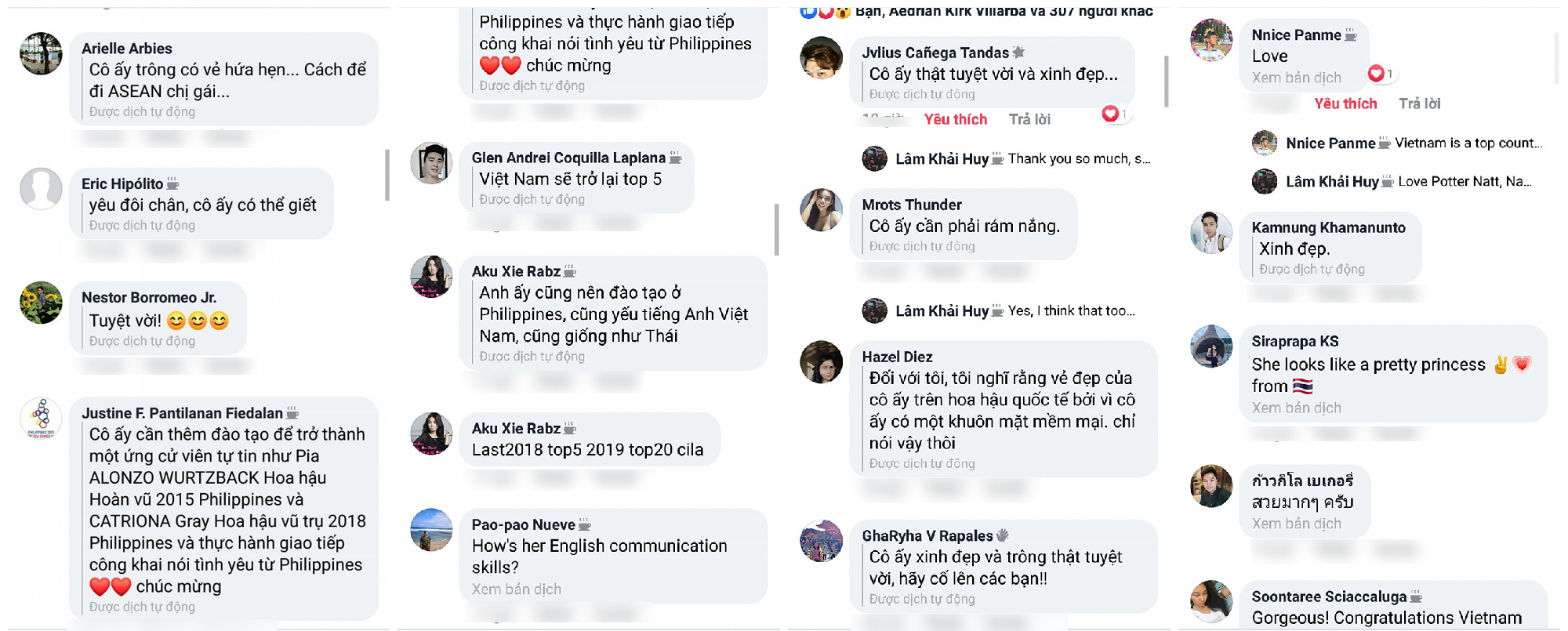 Người hâm mộ Thái Lan và Philippines cũng đưa ra lời khuyên đại diện Việt Nam cần trau dồi thêm về kỹ năng ứng xử để có thể tỏa sáng hơn nữa.