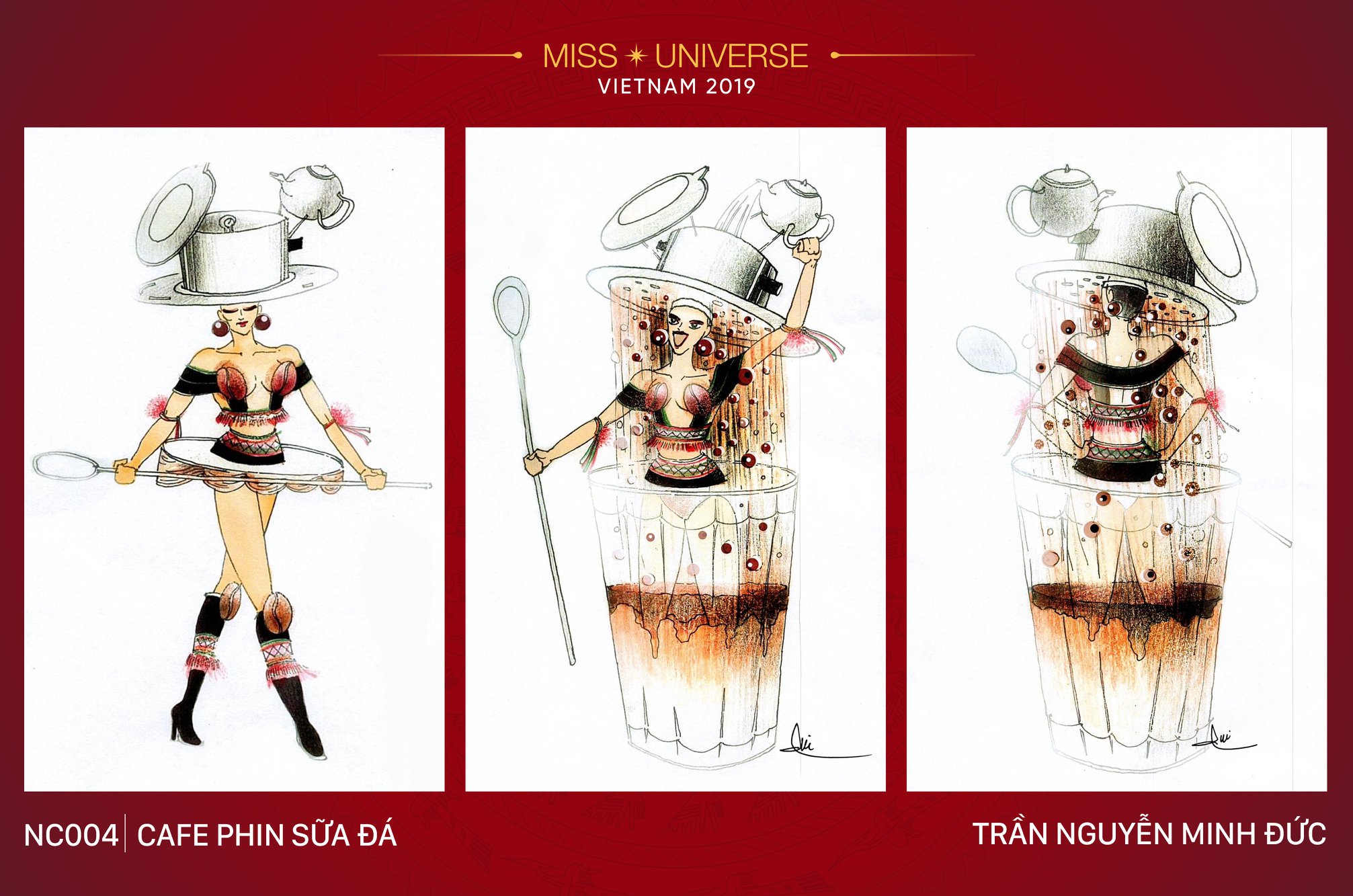 Kể từ lúc bản vẽ xuất hiện trên trang chủ cuộc thi tìm kiếm trang phục dân tộc cho Hoàng Thùy tại Miss Universe 2019 cho đến khi giành chiến thắng ở phần thi National Costume khán giả đã nhìn thấy 4 phiên bản cà phê hoàn toàn khác nhau. Nếu như trước đó phần lớn fan thích thú về hình ảnh ly cà phê khổng lồ bao quanh người mặc cùng họa tiết bắt mắt thì hiện tại được thay bằng bộ jumpsuit đính sequin lấp lánh, khoe trọn đường cong cơ thể.