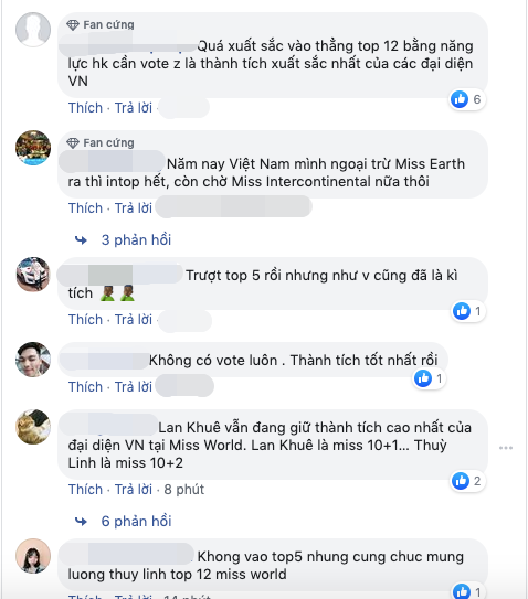 Khán giả tiếc nuối vì Thùy Linh trượt Top 5 nhưng cũng dành lời động viên đến cô nàng vì hành trình tại Miss World 2019 quá xuất sắc.