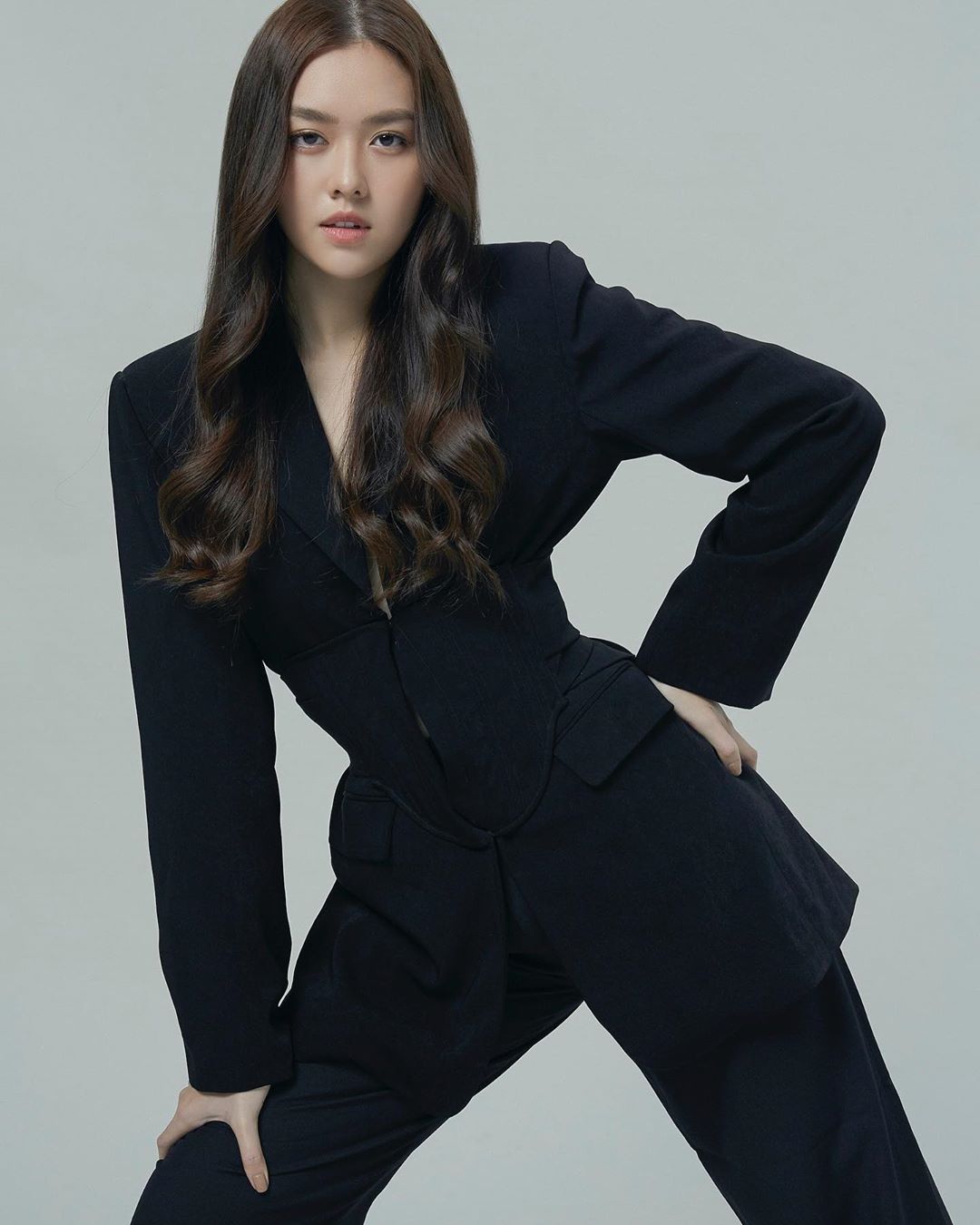 Diện vest đen quyền lực, người đẹp pose dáng ấn tượng, ánh mắt vẫn vô cùng cuốn hút.