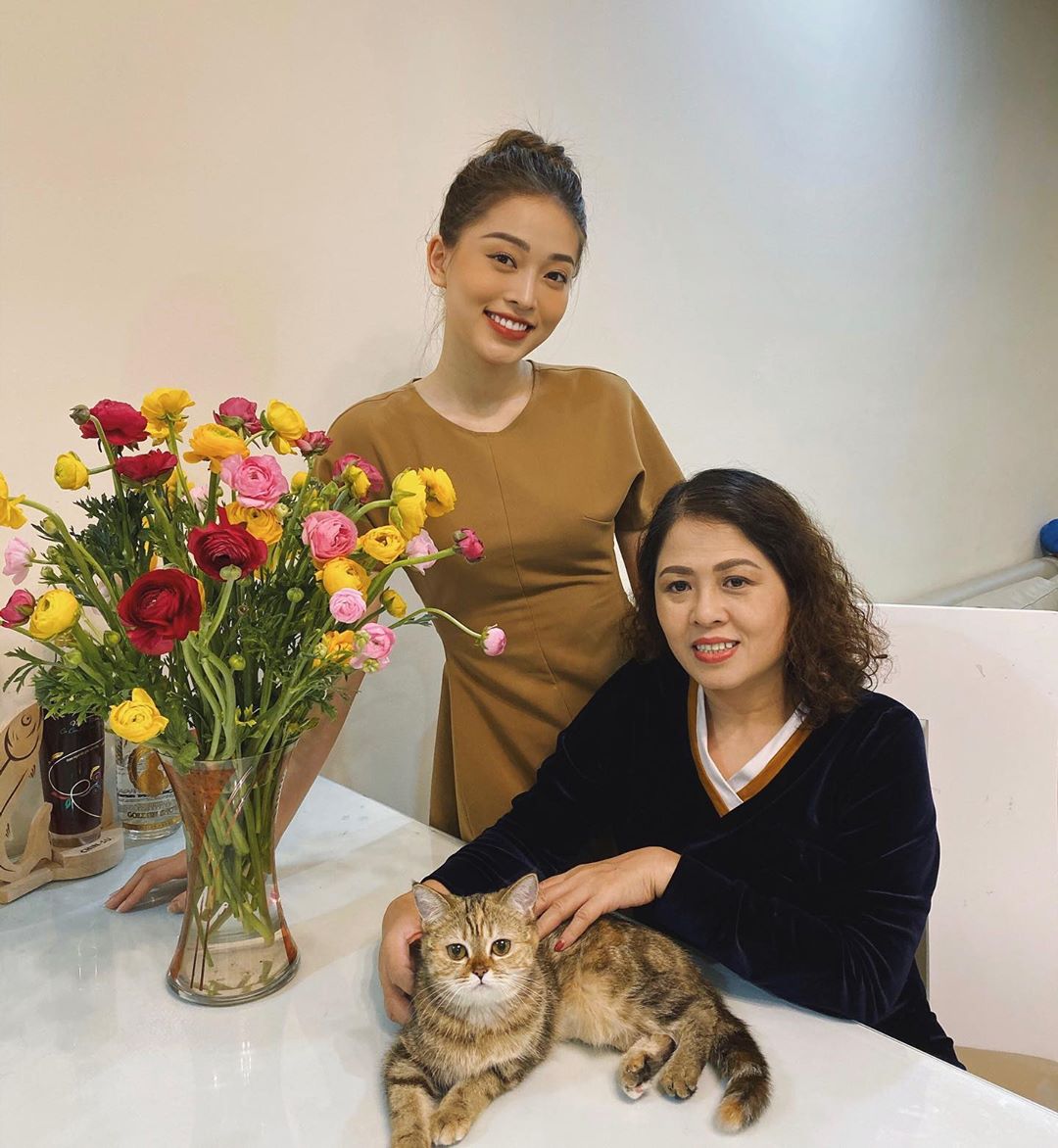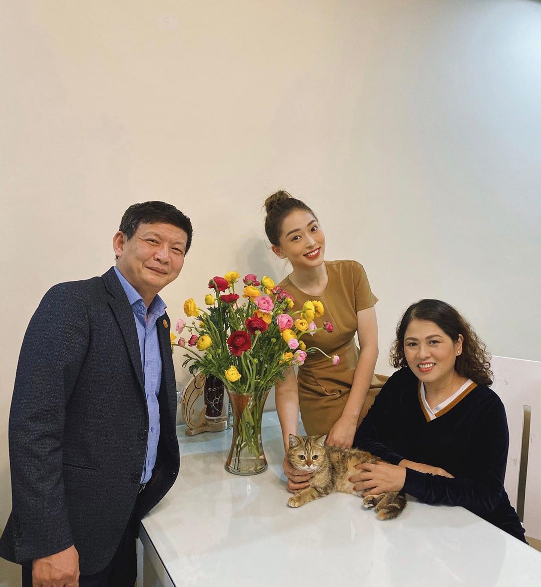 Á hậu Phương Nga đón lễ 8/3 bên cạnh mẹ và bố. Cả nhà hạnh phúc chụp ảnh kỷ niệm.