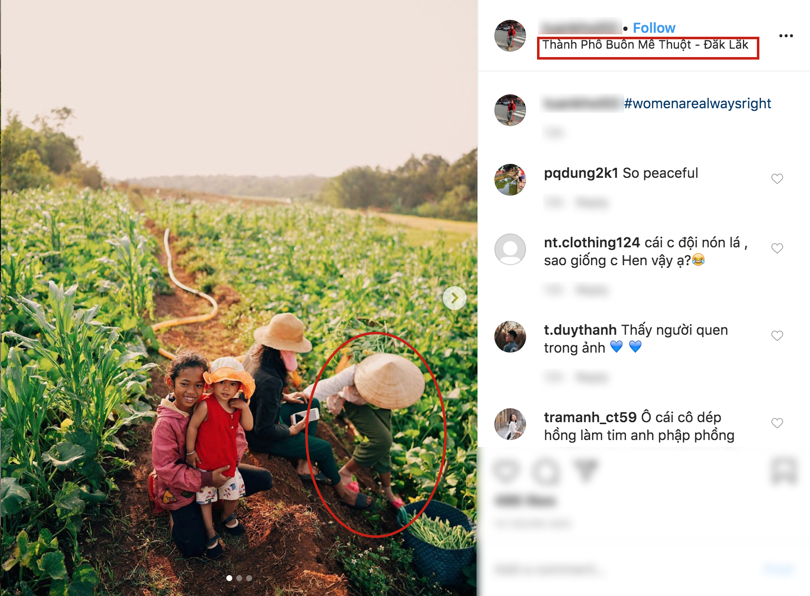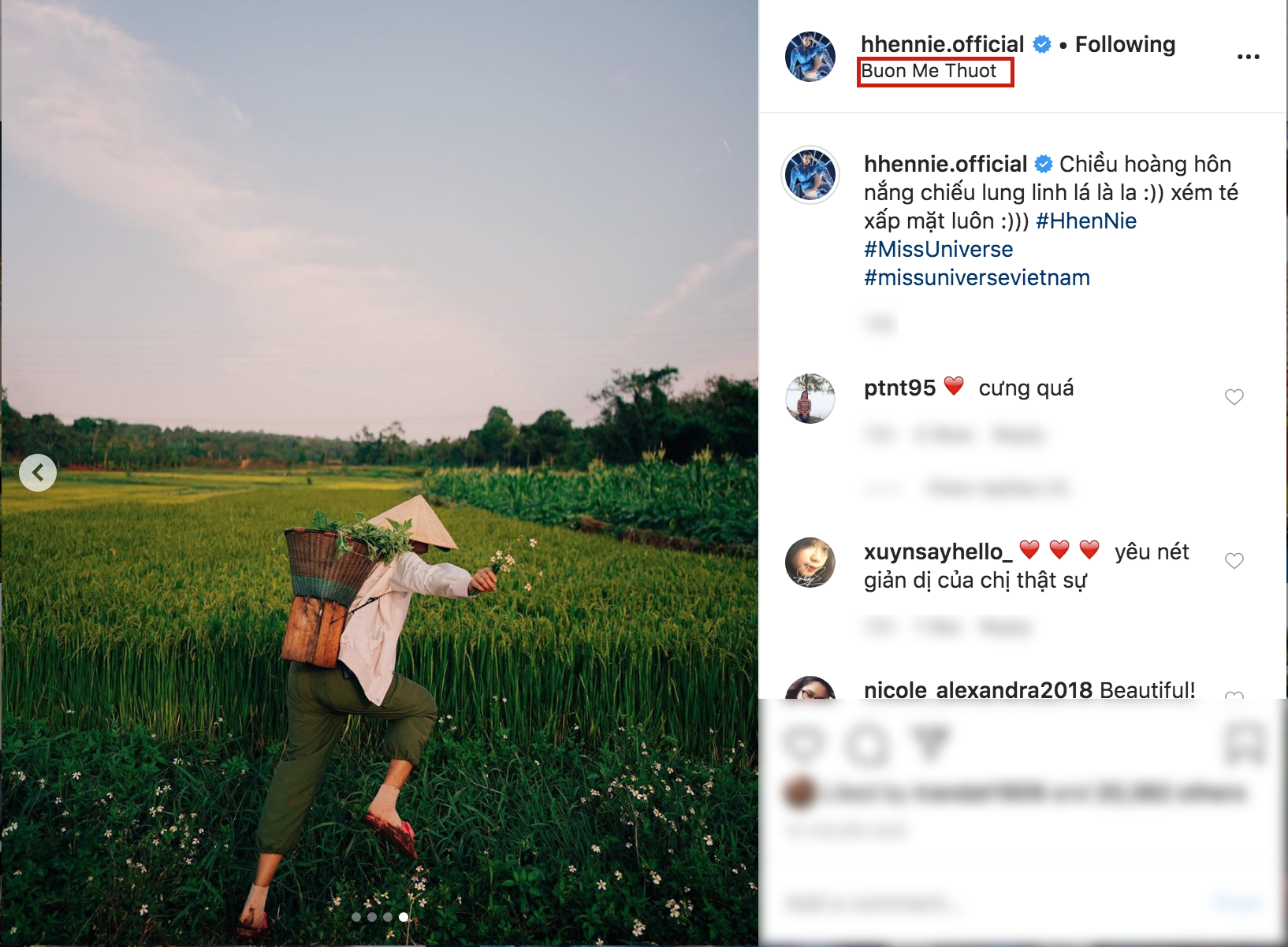 Trong tấm hình mới nhất mà bạn trai tin đồn của H'Hen Niê đăng tải, người hâm mộ nhanh chóng nhận ra dáng vóc của Hoa hậu Hoàn vũ Việt Nam 2017 đang cặm cụi lội ruộng hái rau. Cả 2 check-in cùng địa điểm Buôn Mê Thuột.