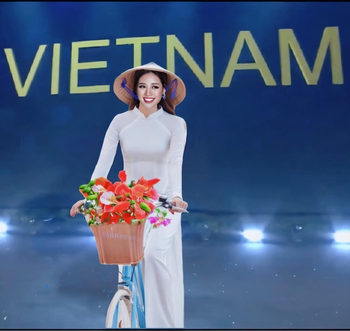 Khánh Vân hỏi H'Hen Niê cách để ship xe đạp và hoa phượng nếu mang áo dài trắng thi National Costume.