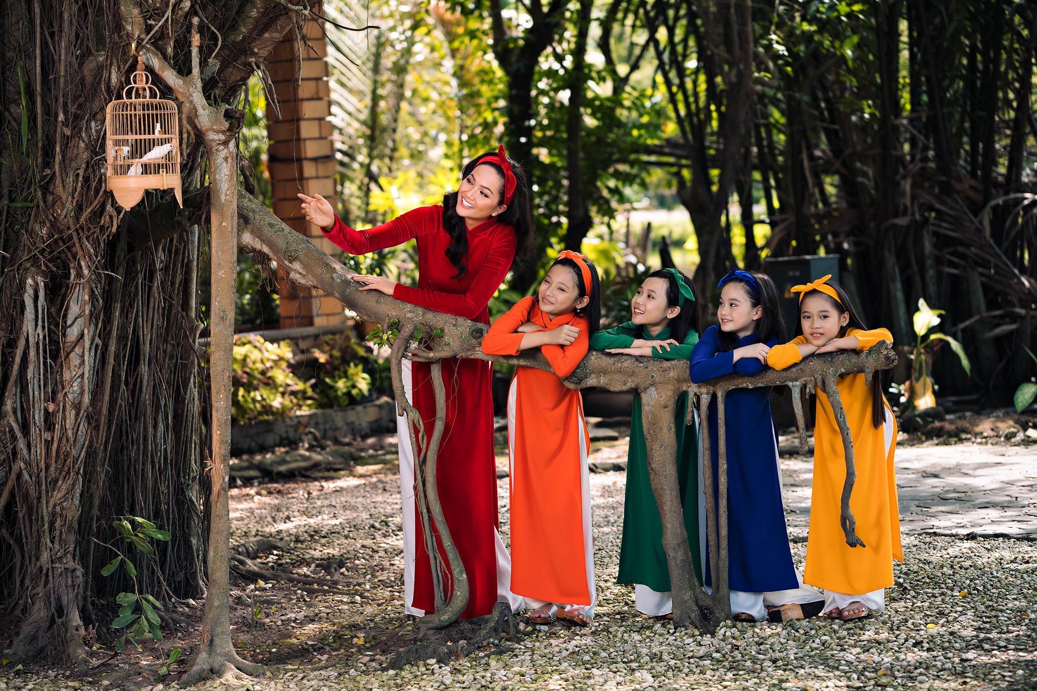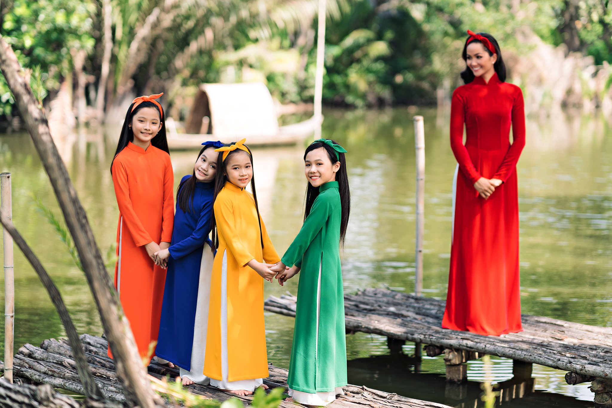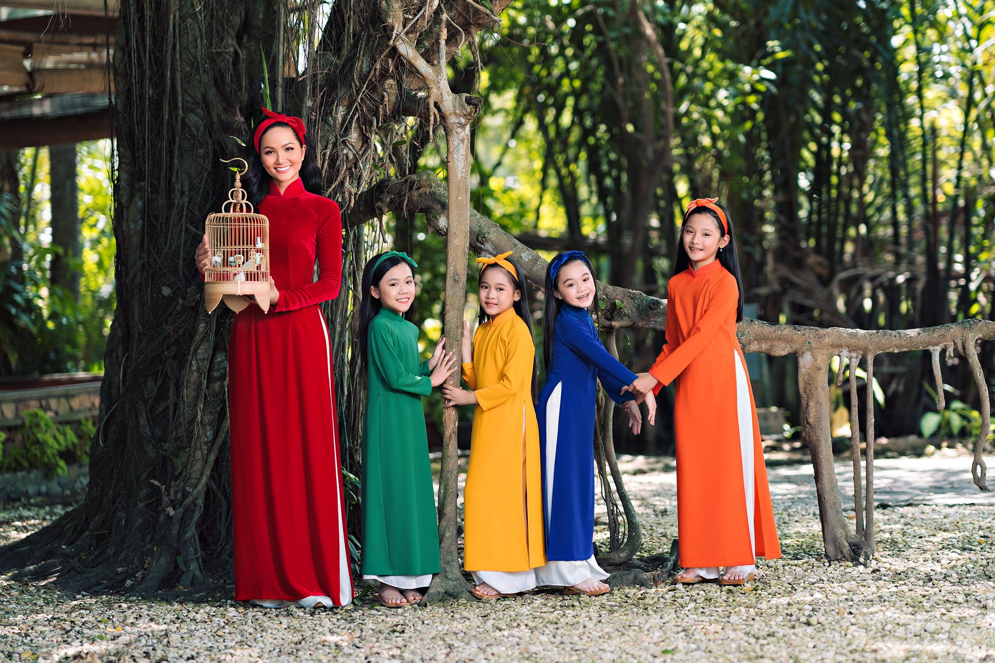 Bộ ảnh mới nhất của H'Hen Niê còn có sự xuất hiện của các bạn nhỏ. Mọi người đều diện những chiếc áo dài đầy màu sắc để đón một cái Tết thực sự vui tươi, hạnh phúc.