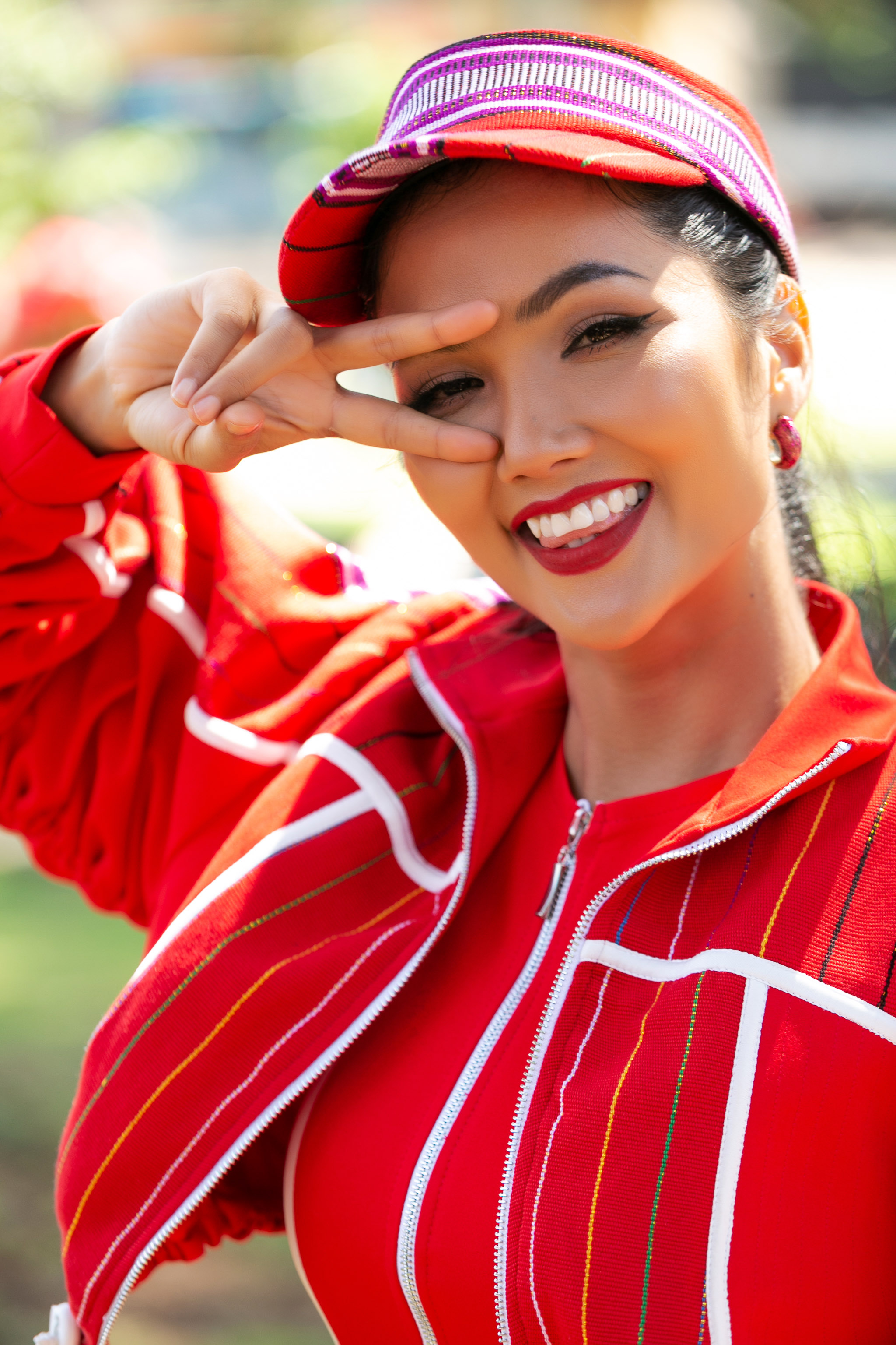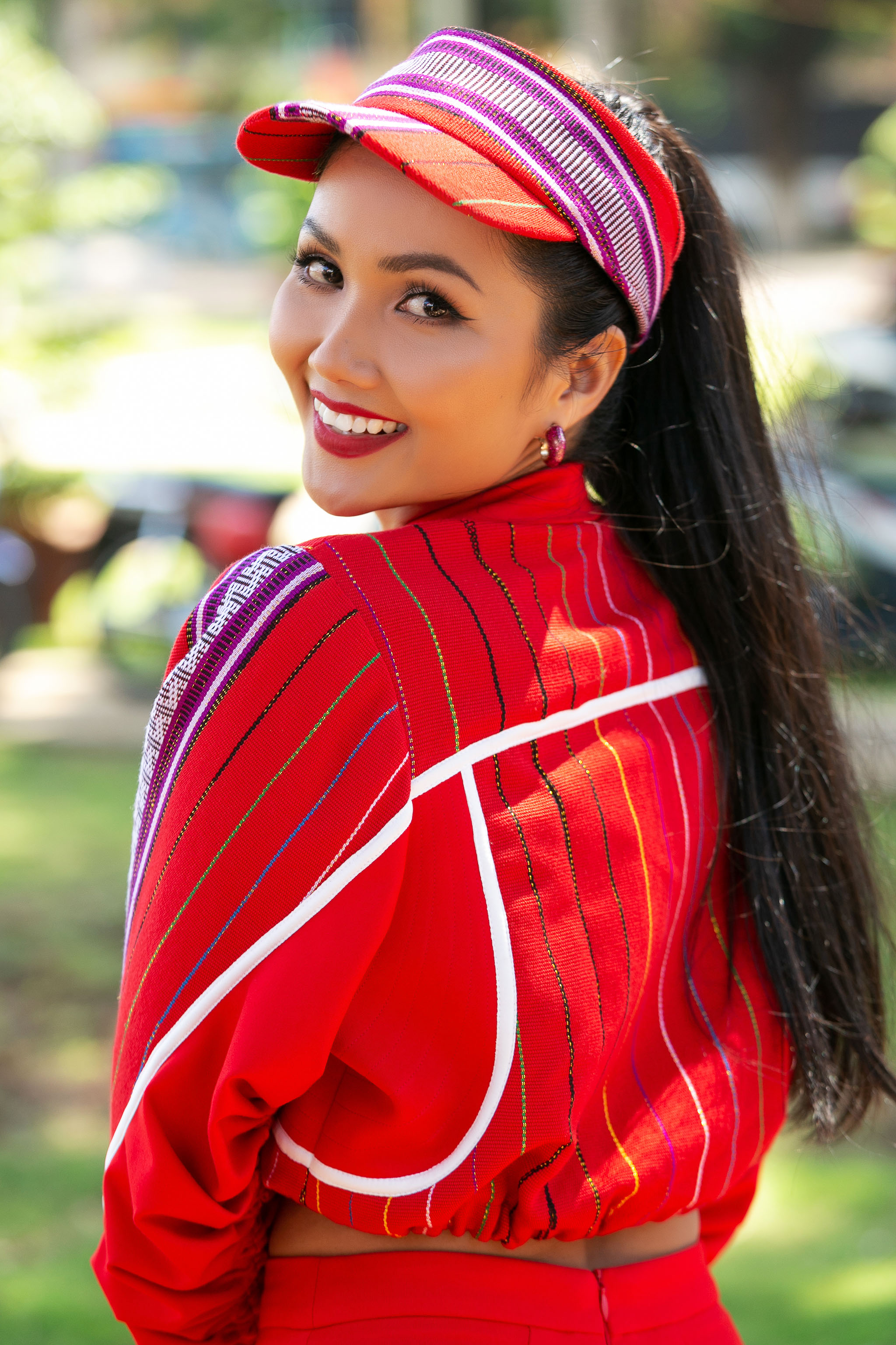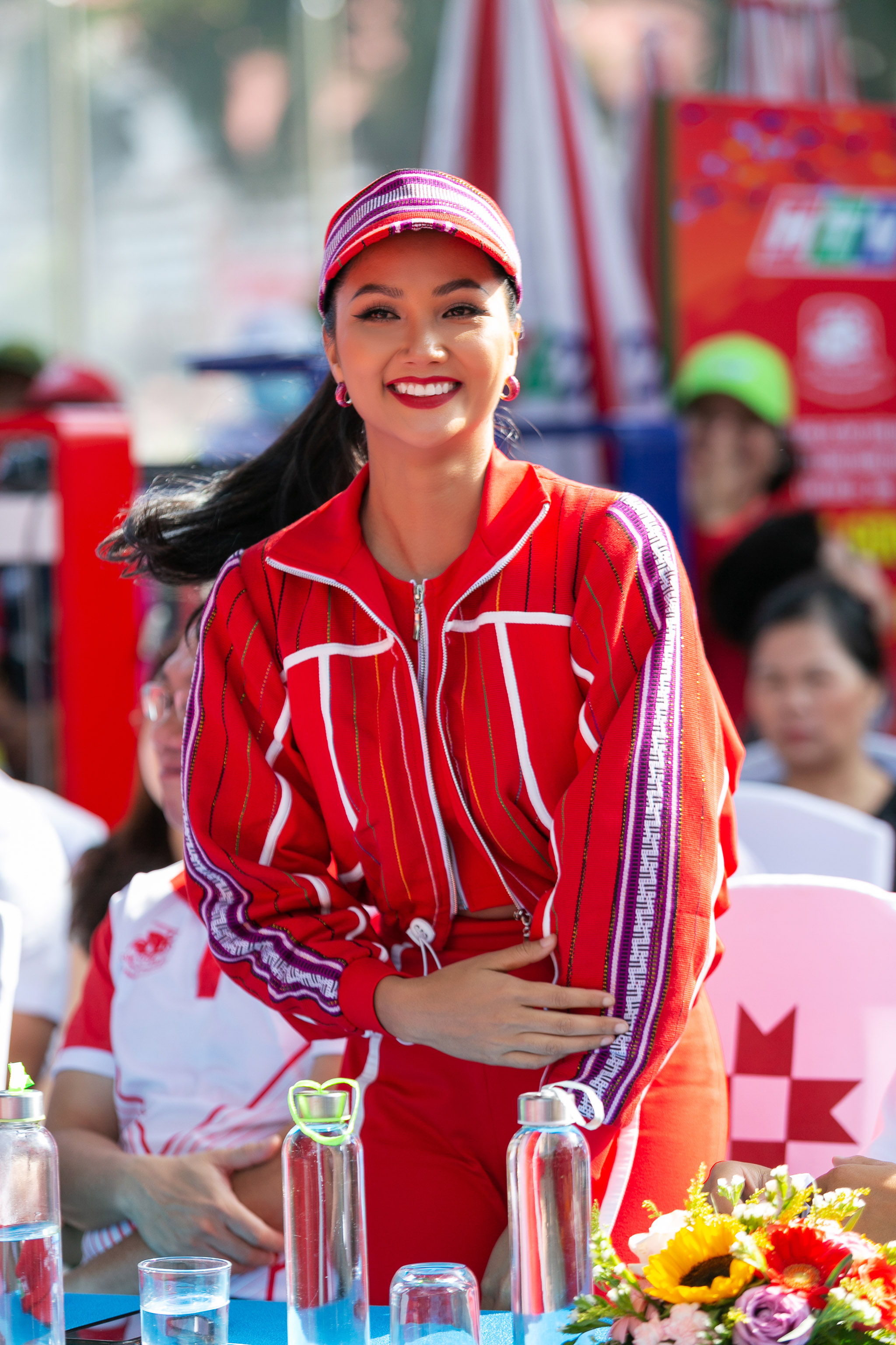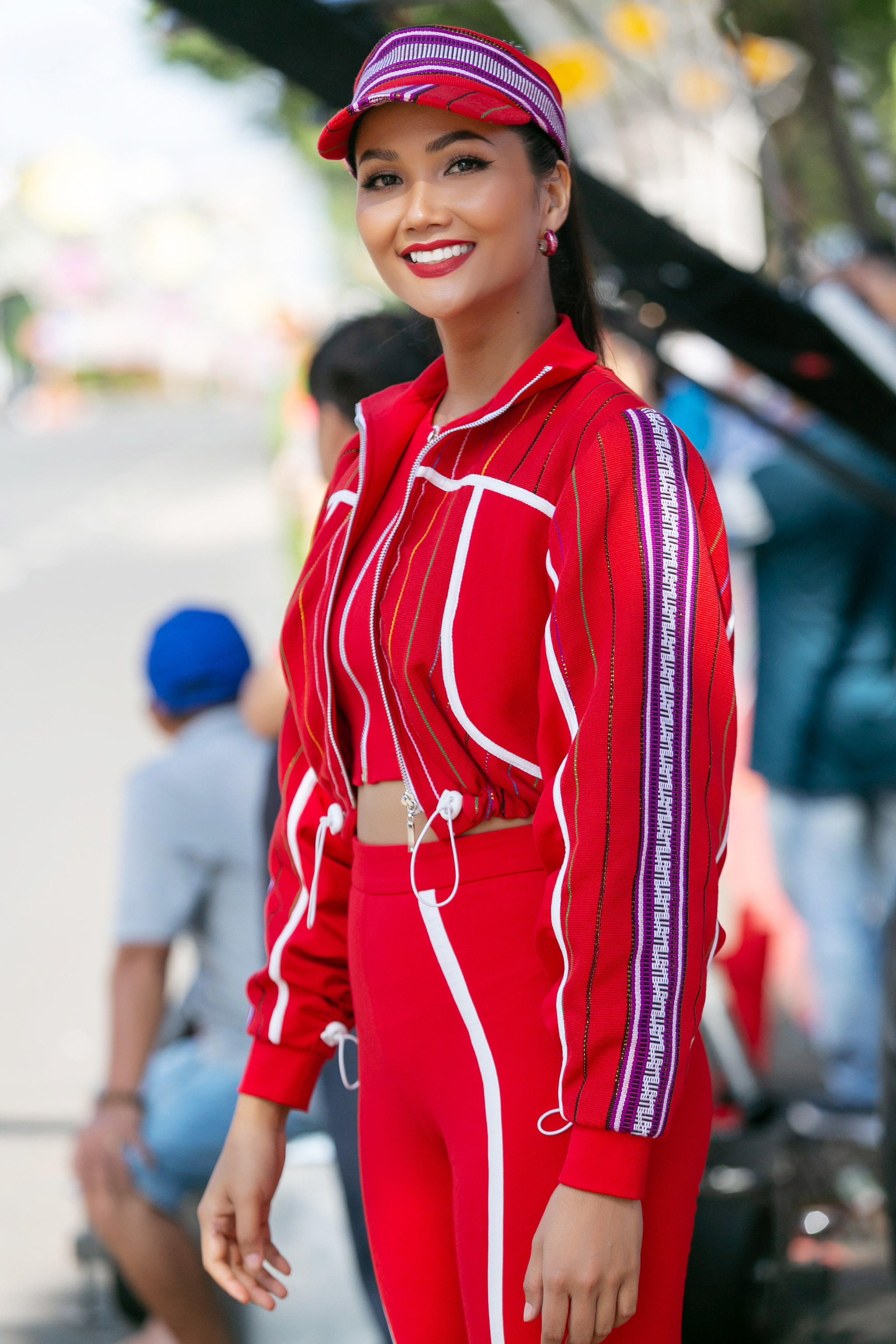 Sáng 30/05, có mặt tại chặng Buôn Ma Thuột của cuộc đua xe đạp tranh cúp truyền hình TPHCM – Non sông liền một dải, Hoa hậu Hoàn vũ Việt Nam 2017 – H’Hen Niê tạo ấn tượng với khán giả khi xuất hiện trong trang phục sporty “đỏ toàn tập” từ chất liệu vải thổ cẩm Ê Đê.