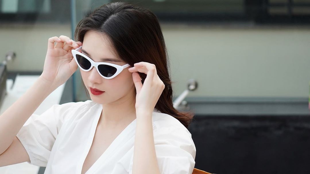 Hoa hậu Đặng Thu Thảo đẹp “sang chảnh” với kính mắt mèo. Người đẹp ghi điểm nhờ làn da trắng sáng.