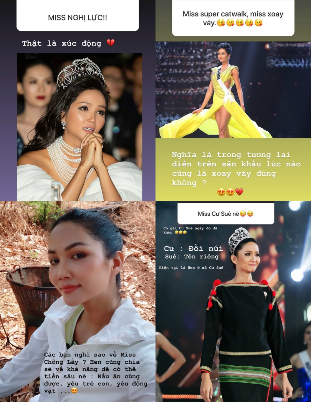 Nhờ fan đề cử cuộc thi nhan sắc có thể tham gia ở tuổi 28, Hoa hậu Hoàn vũ Việt Nam 2017 - H'Hen Niê nhận được hàng loạt câu trả lời thú vị. Chứng kiến cuộc sống bình dị và chặng đường tỏa sáng của người đẹp Ê Đê từ một cô gái dân tộc trở thành mỹ nhân đình đám nhiều khán giả dành lời khen ngợi, ưu ái gọi H'Hen Niê là Miss nghị lực, Miss truyền cảm hứng, Miss Cư Suê,… Đặc biệt, cô nàng còn được fan tiến cử tham gia các cuộc thi với nhiều cái tên vui nhộn như… Miss leo cây