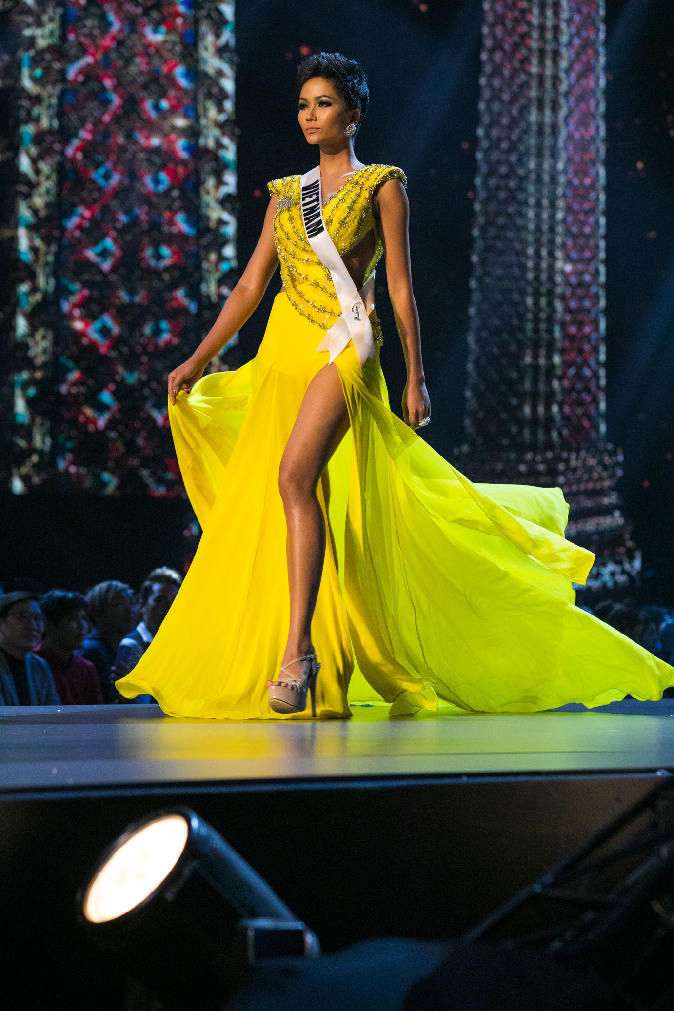 Trước khi lên đường dự thi Hoa hậu Hoàn vũ 2018, tại Việt Nam, H'Hen Niê đã bỏ rất nhiều thời gian cùng với ê-kíp để lựa chọn váy áo cho các phần thi quan trọng, đặc biệt là thiết kế đầm dạ hội phải có trọng lượng nhẹ bởi người đẹp biết rằng đôi chân cô nàng rất yếu, nếu lựa chọn đồ nặng sẽ ảnh hưởng đến chất lượng màn diễn.