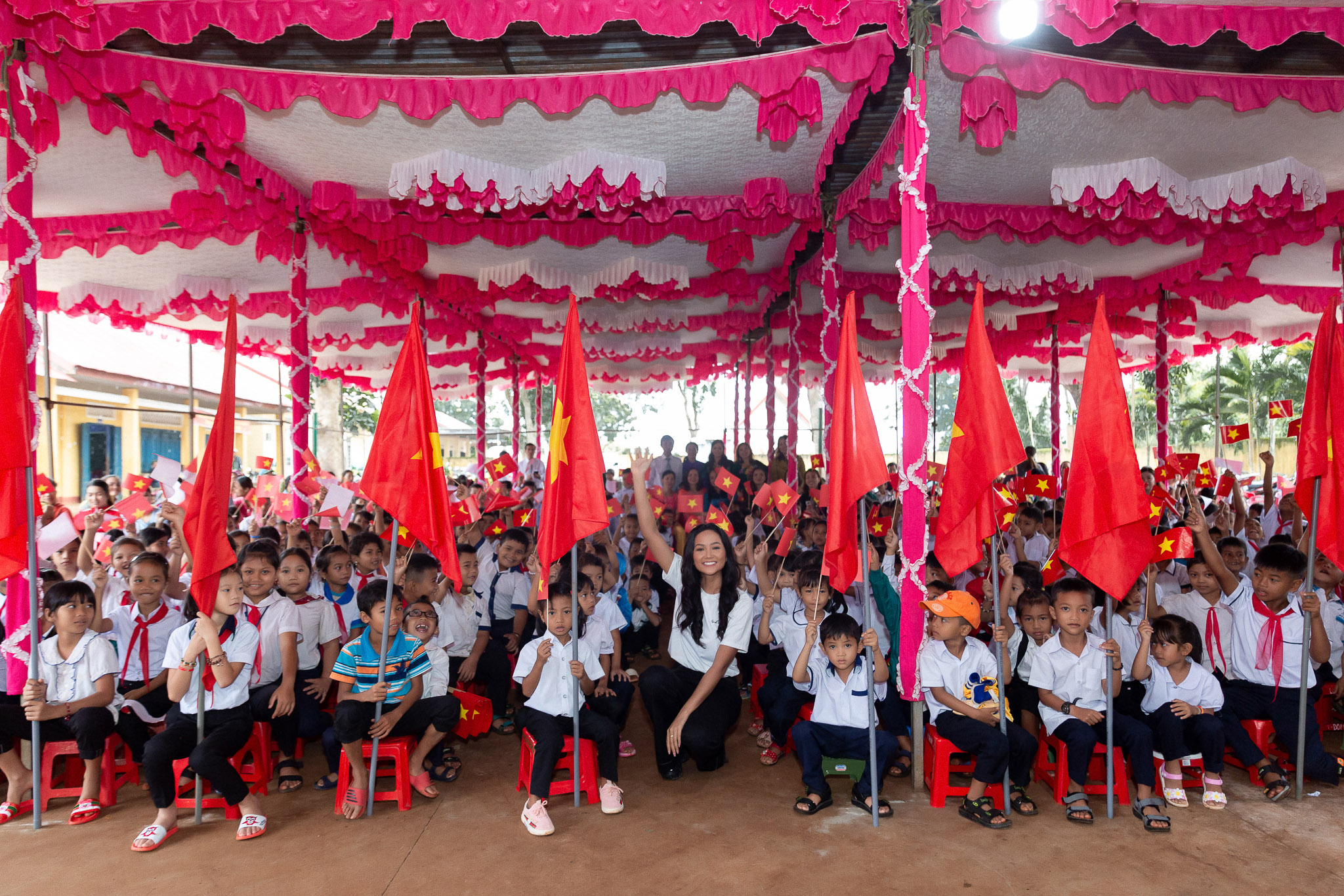 Trong chuyến đi công tác tại quê nhà Đắk Lắk, đương kim Hoa hậu Hoàn vũ Việt Nam - H'Hen Niê đã thu xếp lịch trình để tham dự lễ khai giảng của trường cấp 1 mà người đẹp từng theo học.