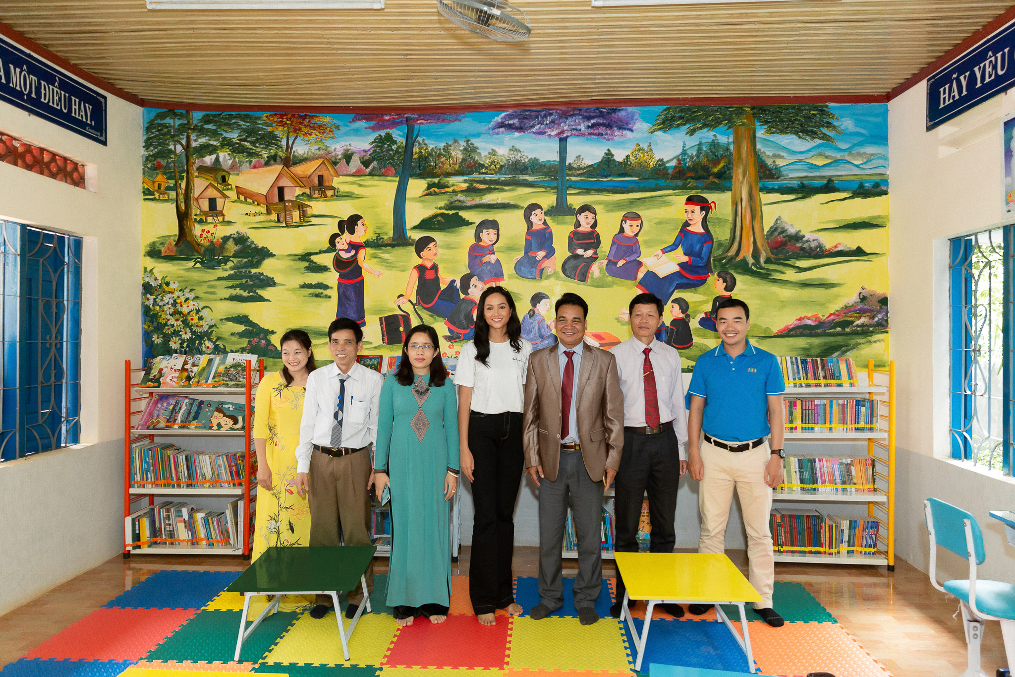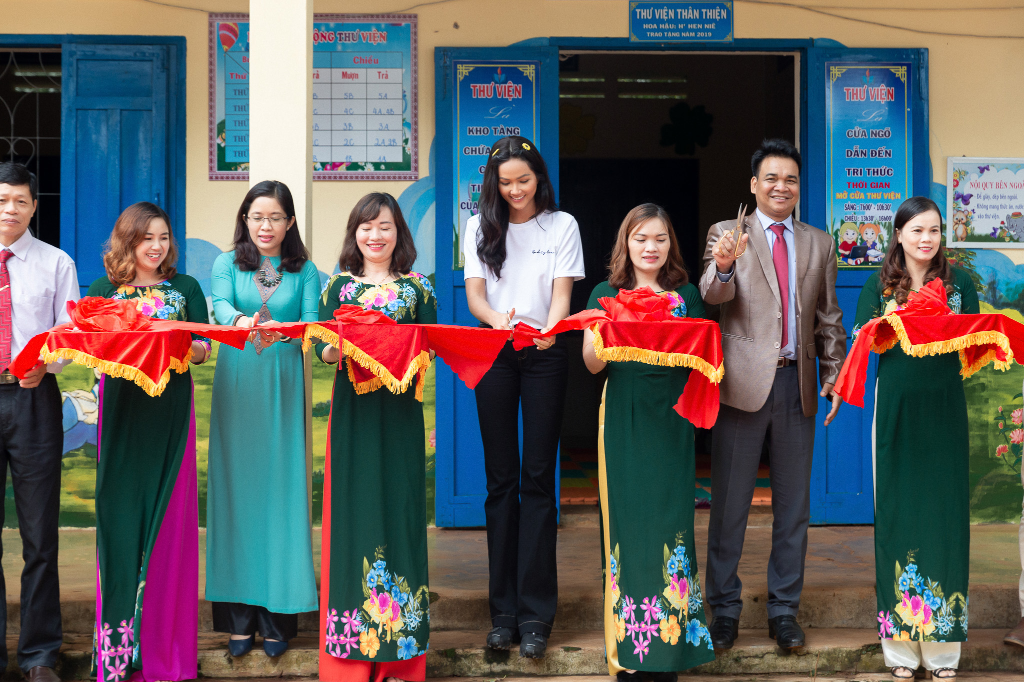 Tại đây, H'Hen Niê cũng trao tặng 30 suất học bổng cho các em học sinh có hoàn cảnh khó khăn. Bên cạnh đó, người đẹp cũng đích thân cùng với nhà trường cắt băng khánh thành thư viên thân thiện. Đây là một trong những dự án vì cộng nổi bật giúp H'Hen Niê tạo được sự chú ý tại cuộc thi Miss Universe 2018. Dự án đã góp phần mang đến một môi trường đọc lành mạnh, nâng cao thói quen đọc sách đối với trẻ nhỏ ở nhiều trường tiểu học.