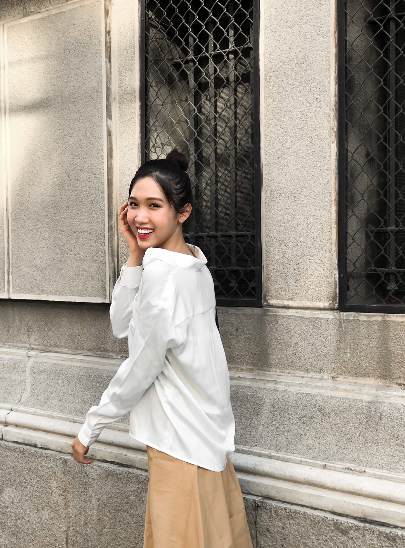 Đỗ Nhật Hà xuống phố với gout thời trang giản dị.