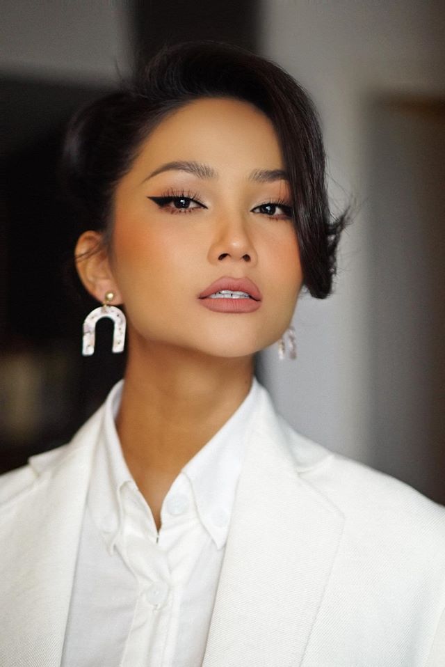 Sau thời gian nghỉ dịch, hoa hậu H'Hen Niê quay trở lại với guồng quay công việc. Người đẹp tái xuất trong bộ vest thanh lịch với gam màu trắng kinh điển, khoe nhan sắc ngày càng mặn mà và đẳng cấp. Hoa hậu Hoàn vũ Việt Nam 2017 cuốn hút fan với layout make-up cá tính kết hợp kiểu tóc quý cô cổ điển.