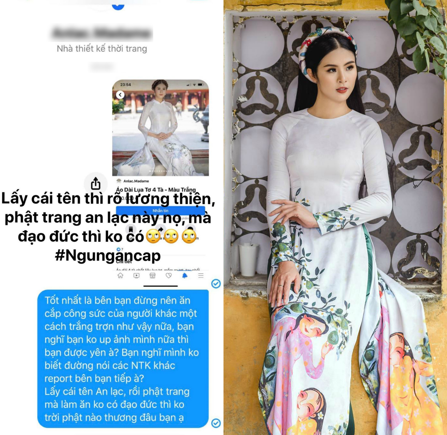 Hoa hậu Ngọc Hân phản ứng gay gắt, tố nhà thiết kế không có đạo đức vì tội ăn cắp hình ảnh.