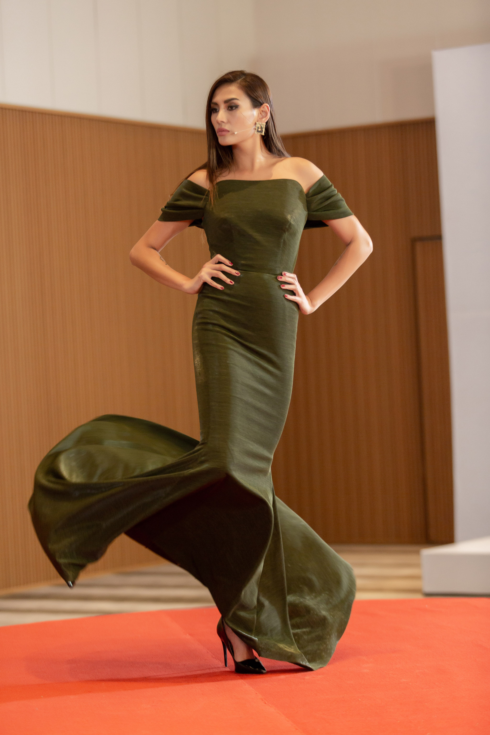 Để giúp 20 người đẹp bước vào phần thi không bị bỡ ngỡ, Võ Hoàng Yến, Vũ Thu Phương cùng H'Hen Niê đã trổ tài thị phạm. Nổi bật trong thiết kế đầm dạ hội đỏ, siêu mẫu Võ Hoàng Yến tận dụng triệt để khả năng làm chủ ống kính bằng cách đưa ánh mắt sắc sảo đi theo chiều dịch chuyển của cánh tay robot.
