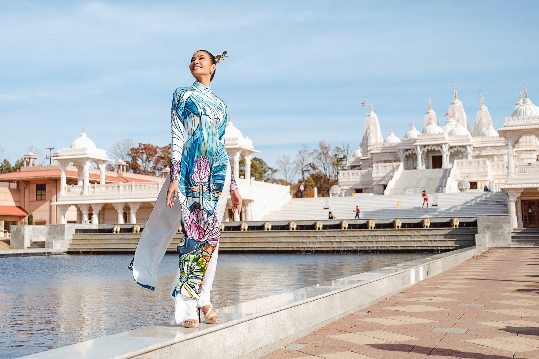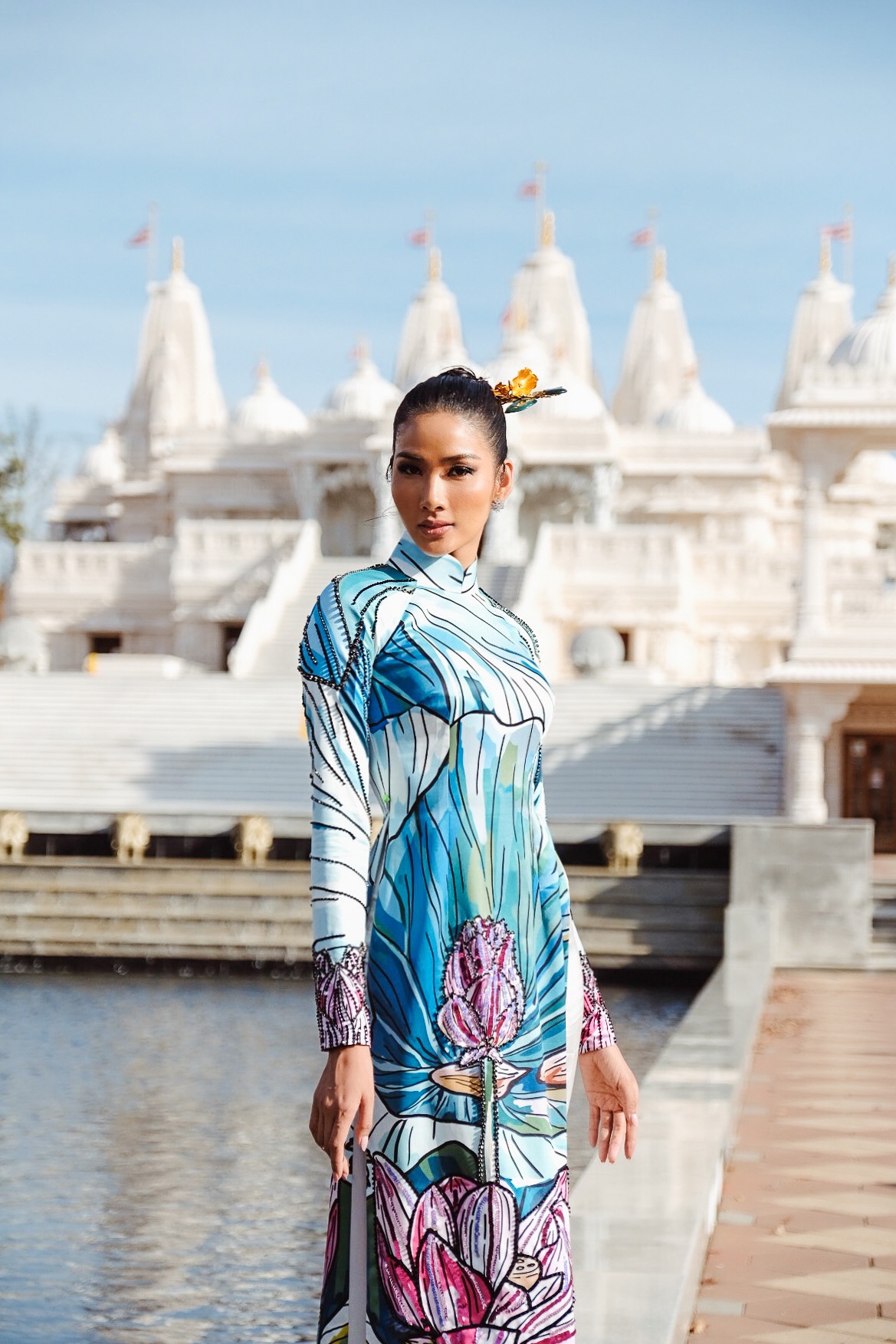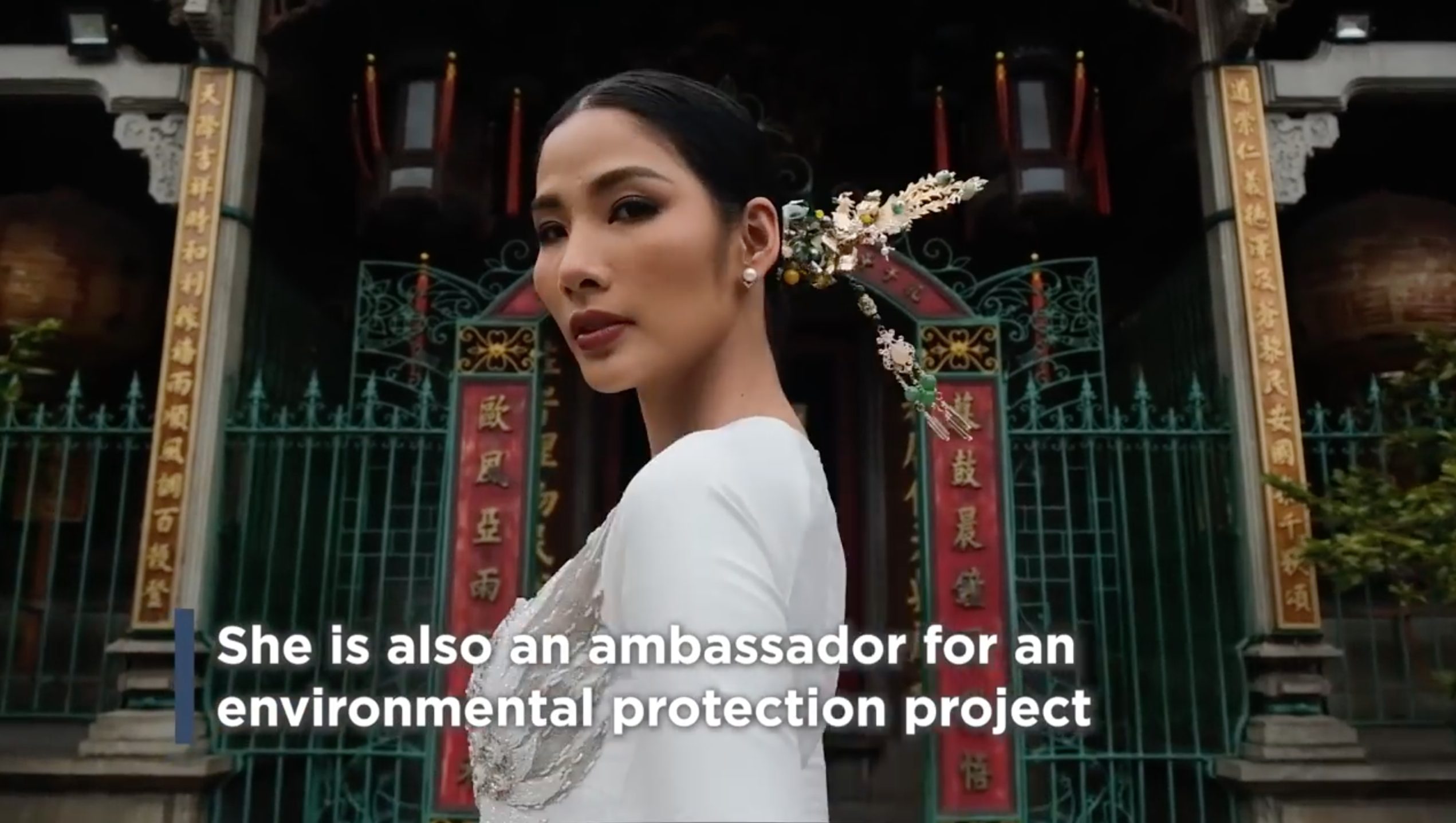 Trong video giới thiệu, á hậu Hoàng Thùy không chỉ khoe vẻ đẹp thanh thoát với chiếc váy dạ hội xanh được ghi hình tại Vịnh Hạ Long - một danh lam thắng cảnh nổi tiếng của Việt Nam từng được UNESCO xếp vào Top 7 kỳ quan thiên nhiên thế giới, mà còn biến hóa bản thân với hình ảnh người phụ nữ Việt Nam duyên dáng, sắc sảo trong tà áo dài truyền thống của dân tộc.