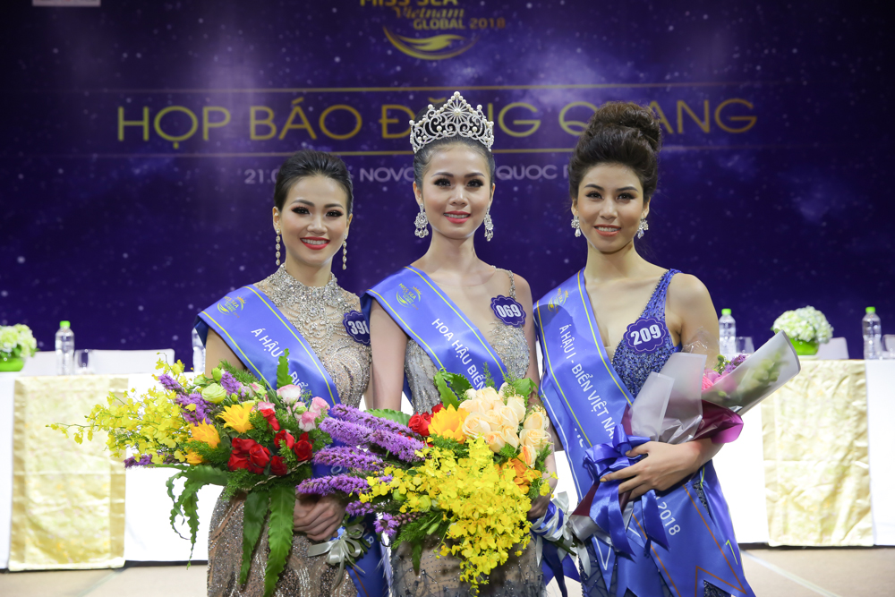 Tối 21/4, Hoa hậu Biển Việt Nam toàn cầu 2018 chính thức khép lại với chiến thắng thuộc về thí sinh Nguyễn Thị Kim Ngọc đến từ Tiền Giang. Sau khi đăng quang, 3 người đẹp có buổi gặp gỡ, trả lời những thắc mắc của truyền thông.