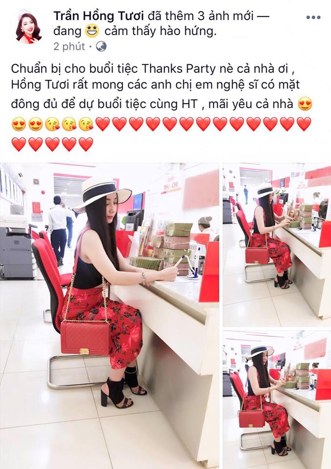 Hoa hậu Hồng tươi quyết định chi mạnh tay cho tiệc thanks party.
