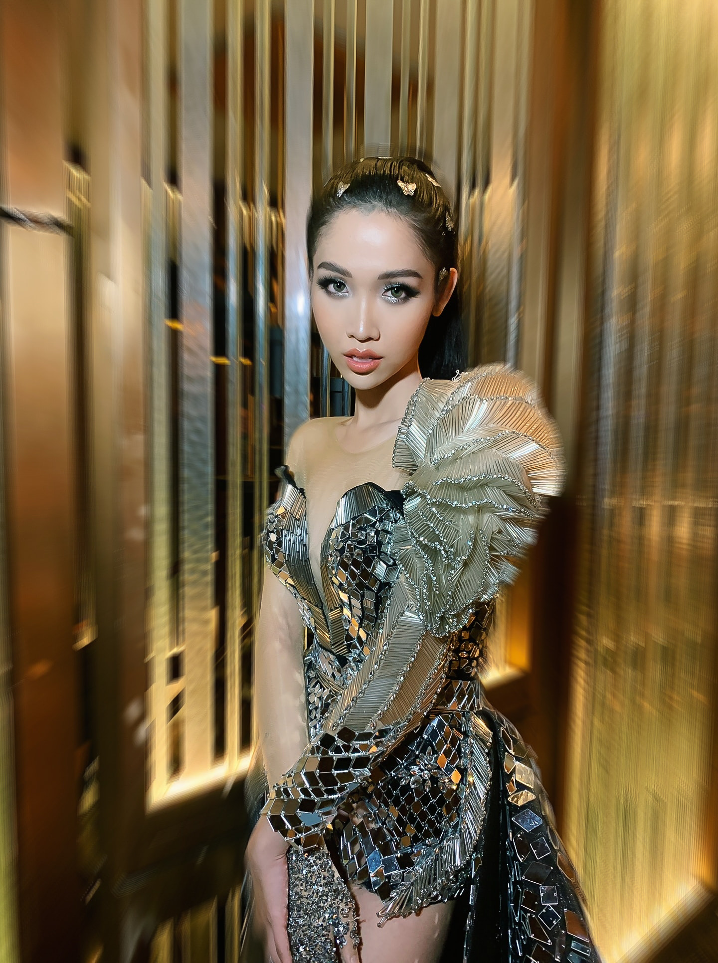 Quán quân The Tiffany Vietnam 2018 – Đỗ Nhật Hà diện thiết kế dạ hội ánh kim lấp lánh, khoe thần thái sắc lạnh.