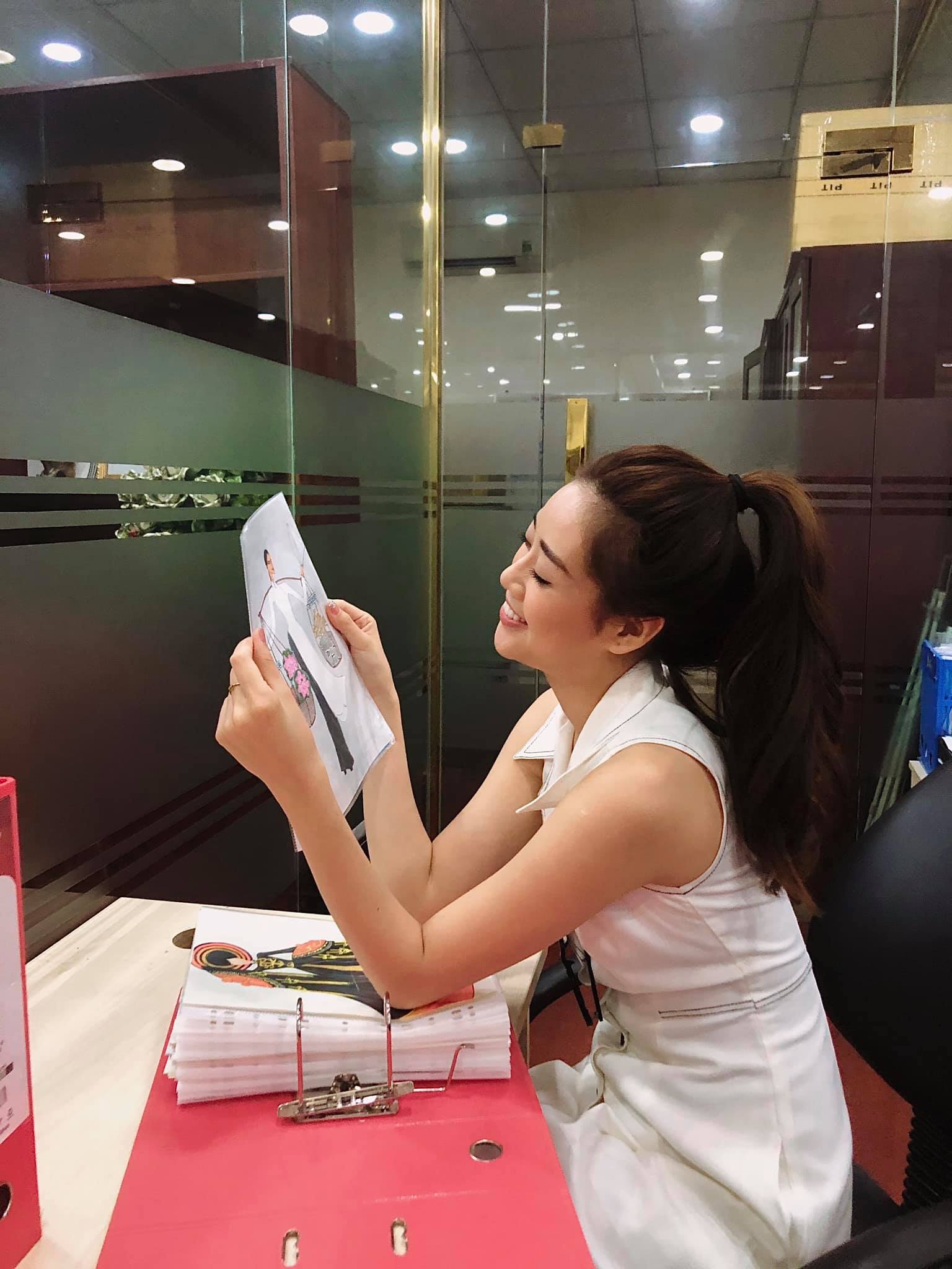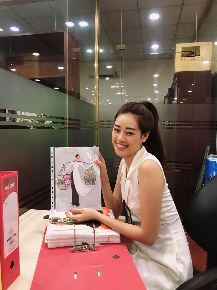 Hoa hậu Khánh Vân khoe bản vẽ của các bạn thí sinh gửi về cuộc thi Tìm kiếm mẫu thiết kế Trang phục dân tộc mang đến Miss Universe 2020.