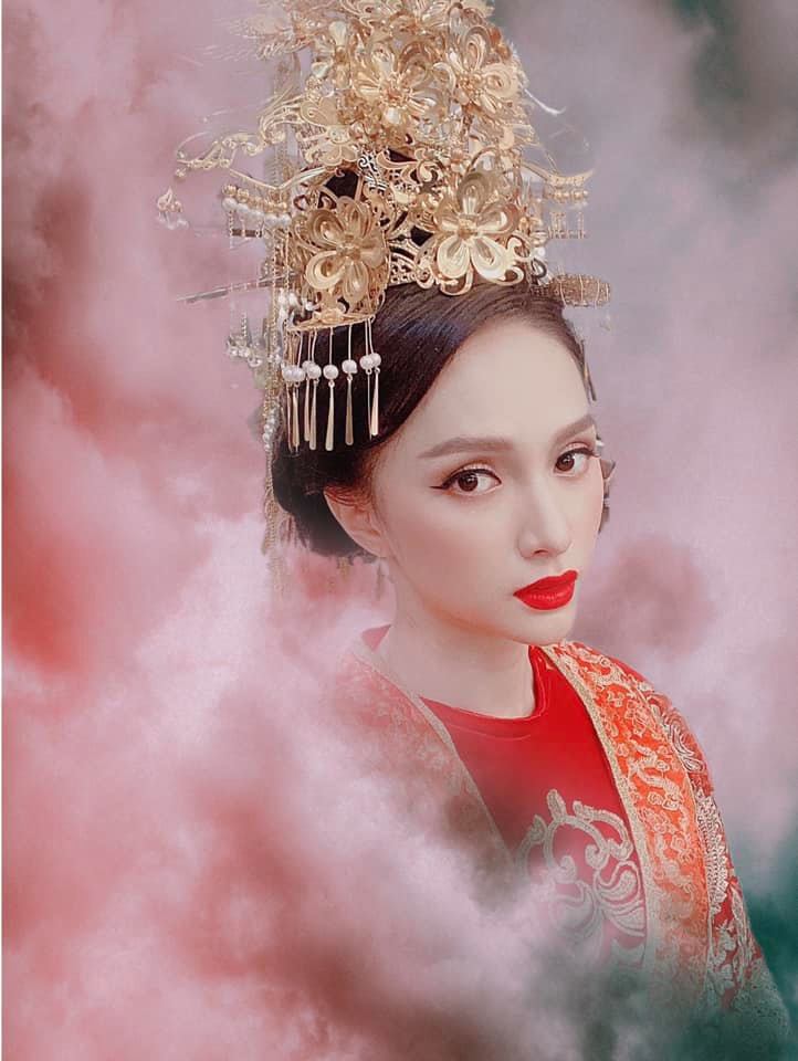 Hình ảnh mới nhất của Hương Giang khiến fan ấn tượng và mê mẩn. Xuất hiện trong tạo hình cổ trang, Hoa hậu Chuyển giới Quốc tế 2018 chứng minh với người hâm mộ sự đa dạng trong phong cách thời trang. Diện phục trang đỏ rực rỡ, đầu đội mão uy nghiêm, giọng ca Anh đang ở đâu đấy anh khoe nhan sắc rạng ngời. Có thể thấy, Hương Giang là một trong số ít nàng hậu có thể “cân” nhiều layout make-up và làm tóc khác nhau, từ style nhẹ nhàng, ngọt ngào đến sắc sảo, thần thái.