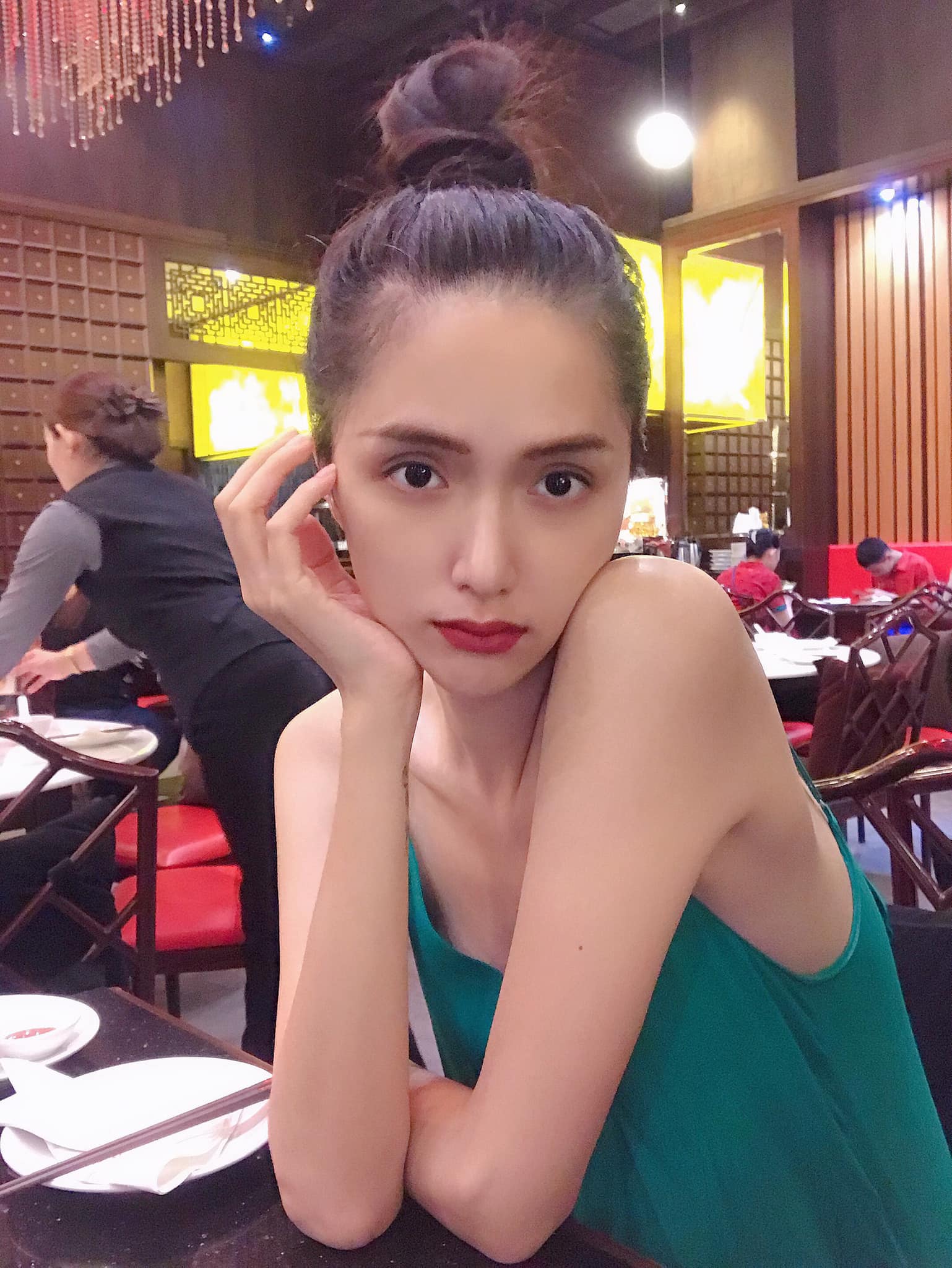 Chia sẻ với SAOstar, người đẹp cho biết khi đăng ký dự thi Miss Universe Vietnam 2019, cô nàng đã gọi điện cho báo cho Hương Giang: “Chị Giang ơi, năm nay em quyết định thi Hoa hậu Hoàn vũ; Chị Giang bảo: 'Đúng! Em cứ thi đi! Chị ủng hộ!”.