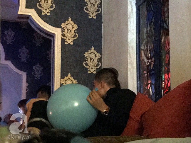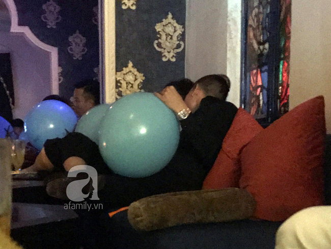 Cả hai còn dùng bóng cười, một thú chơi mới nở rộ của giới trẻ ở những quán bar hiện nay.