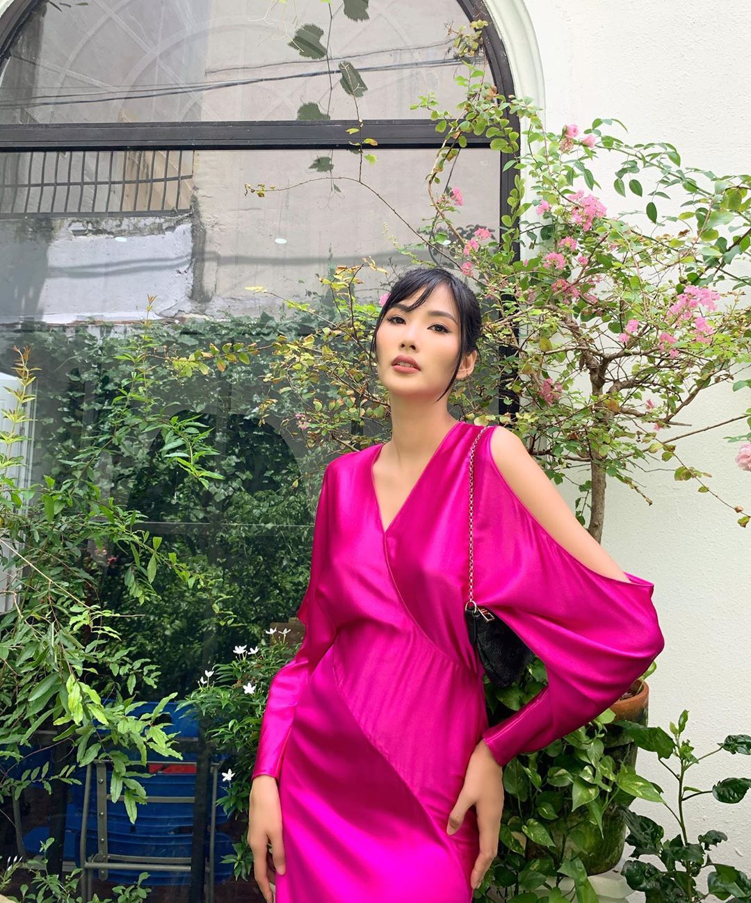 Á hậu Hoàng Thùy diện váy hồng rực rỡ khoe dáng quyến rũ.