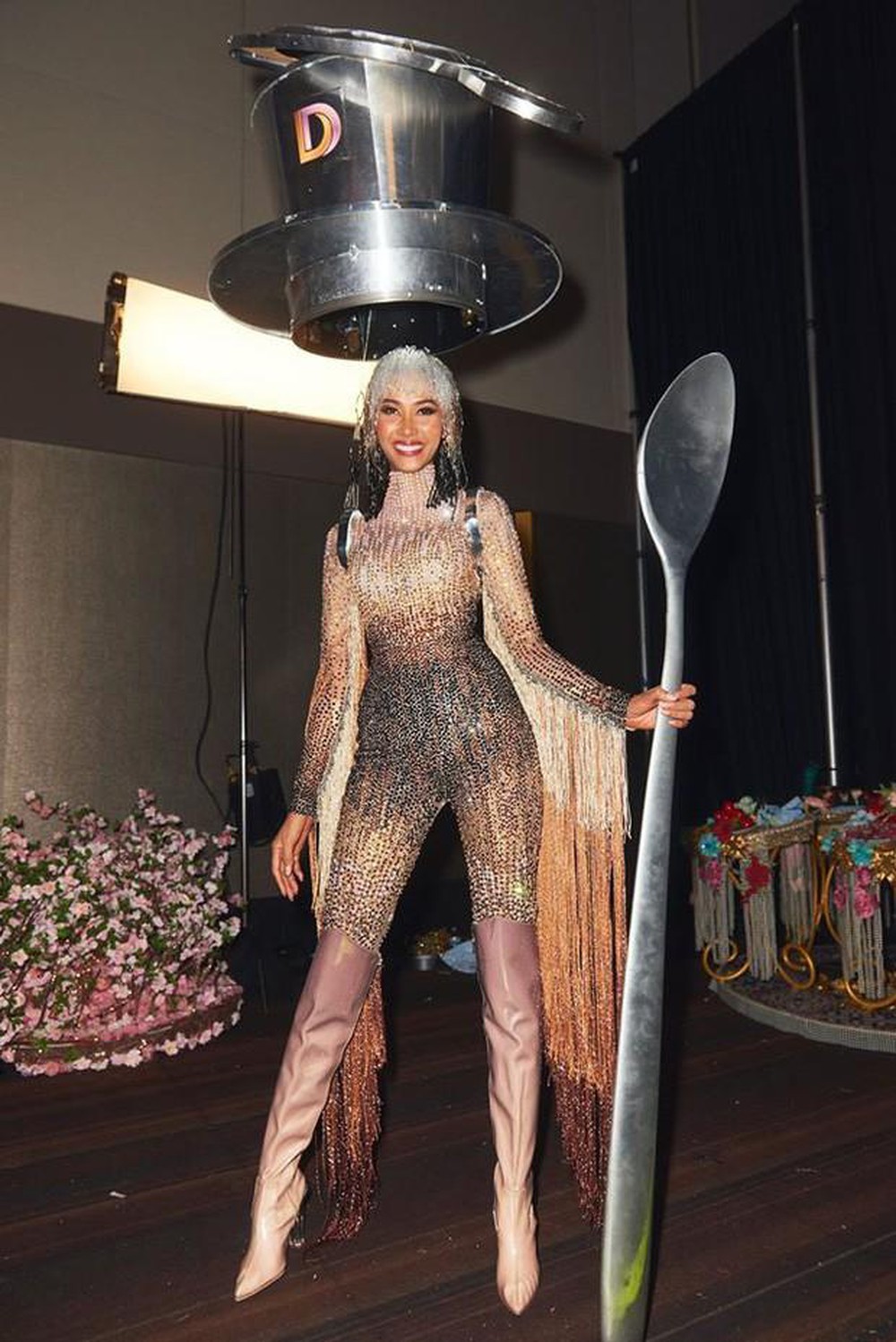 Cheslie Kryst ấn tượng sâu sắc về sự chỉn chu của Hoang Thùy. Dù chỉ diễn tổng duyệt tại khách sạn, trong khi các cô gái khác đa phần mặc đồ thể thao, quần jean còn Hoàng Thùy diện luôn một thiết kế dạ hội xuất sắc - xứng tầm Evening Gown.