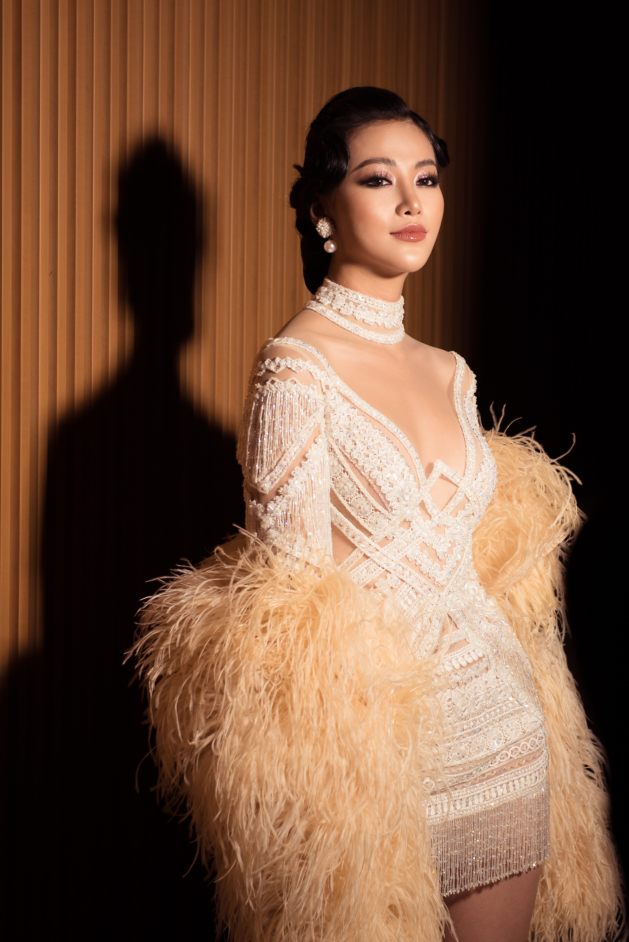 Tại khu vực thảm đỏ, diện mẫu thiết kế lông vũ ấn tượng cùng style make up mang hơi hướng của vẻ đẹp thập niên, Miss Earth 2018 vẻ đẹp quyến rũ và thần thái vô cùng sắc sảo. Đứng cạnh đọ dáng cùng Hoa hậu Việt Nam Đỗ Mỹ Linh, cả 2 nàng hậu đều “mỗi người một vẻ, mười phân vẹn mười”.