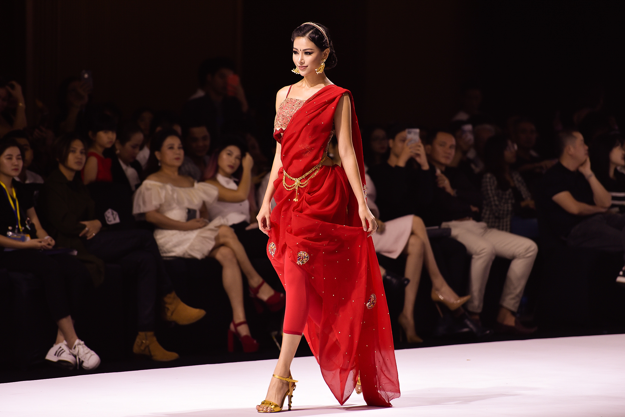 Trở lại sàn runway sau khi trao lại vương miện, Phương Khánh trình diễn đầy tự tin và thu hút. Với thiết kế trang phục truyền thống của người Ấn, Miss Earth 2018 nổi bật bởi thần sắc quyền lực.