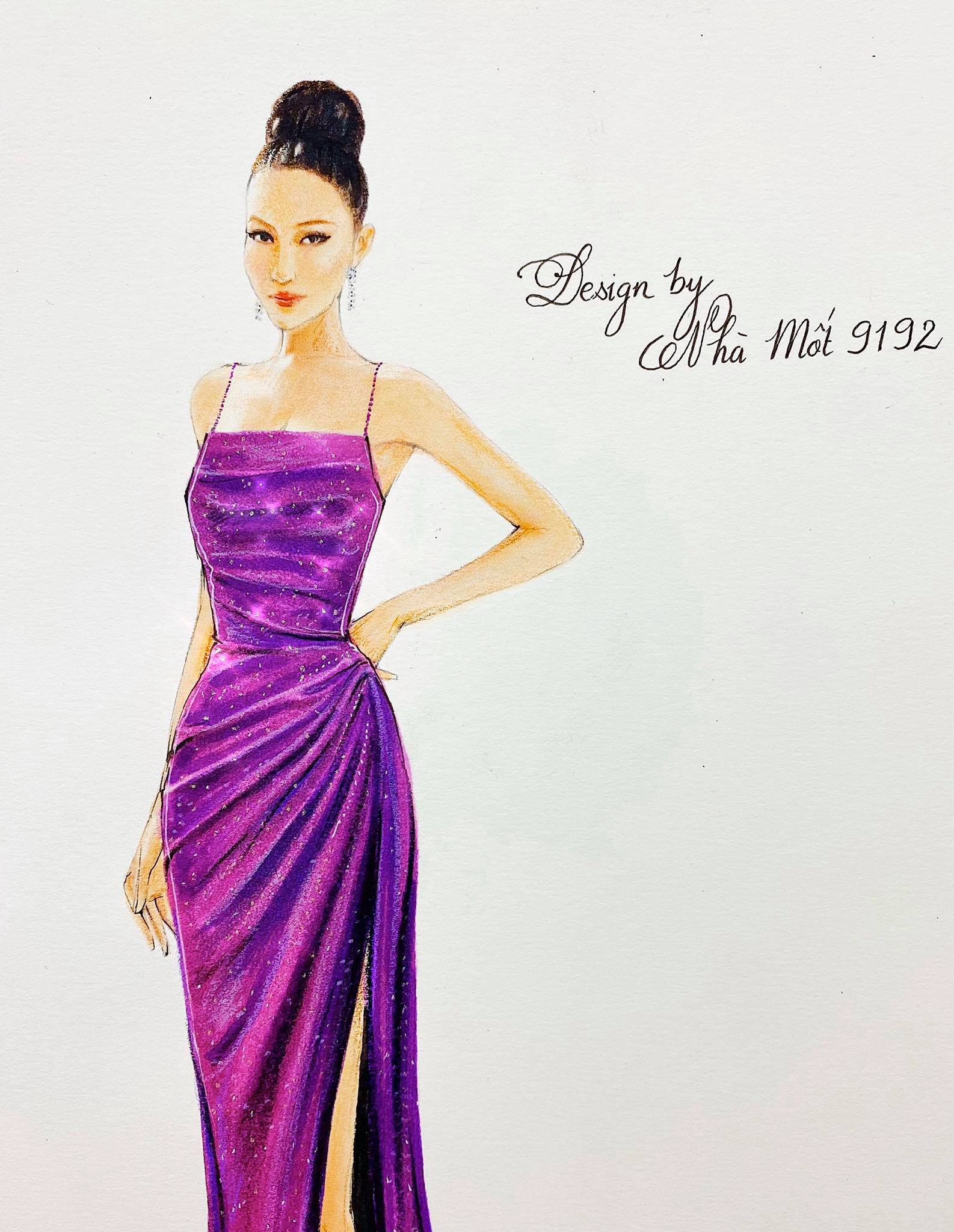 Bộ váy dạ hội màu tím được Hoài Sa tiết lộ trong hậu trường khiến fan rất phấn khích.