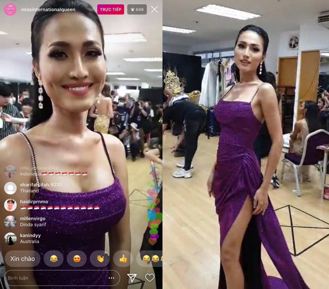 Nhiều fan cho rằng bộ váy màu tím quyến rũ này thể hiện chiến thuật rất thông minh của Hoài Sa vì sắc tím hòa hợp với màu của chiếc vương miện kỷ niệm 15 cuộc thi. Fan Việt chờ đợi Hoài Sa tỏa sáng trong giây phút đăng quang vào tối nay.