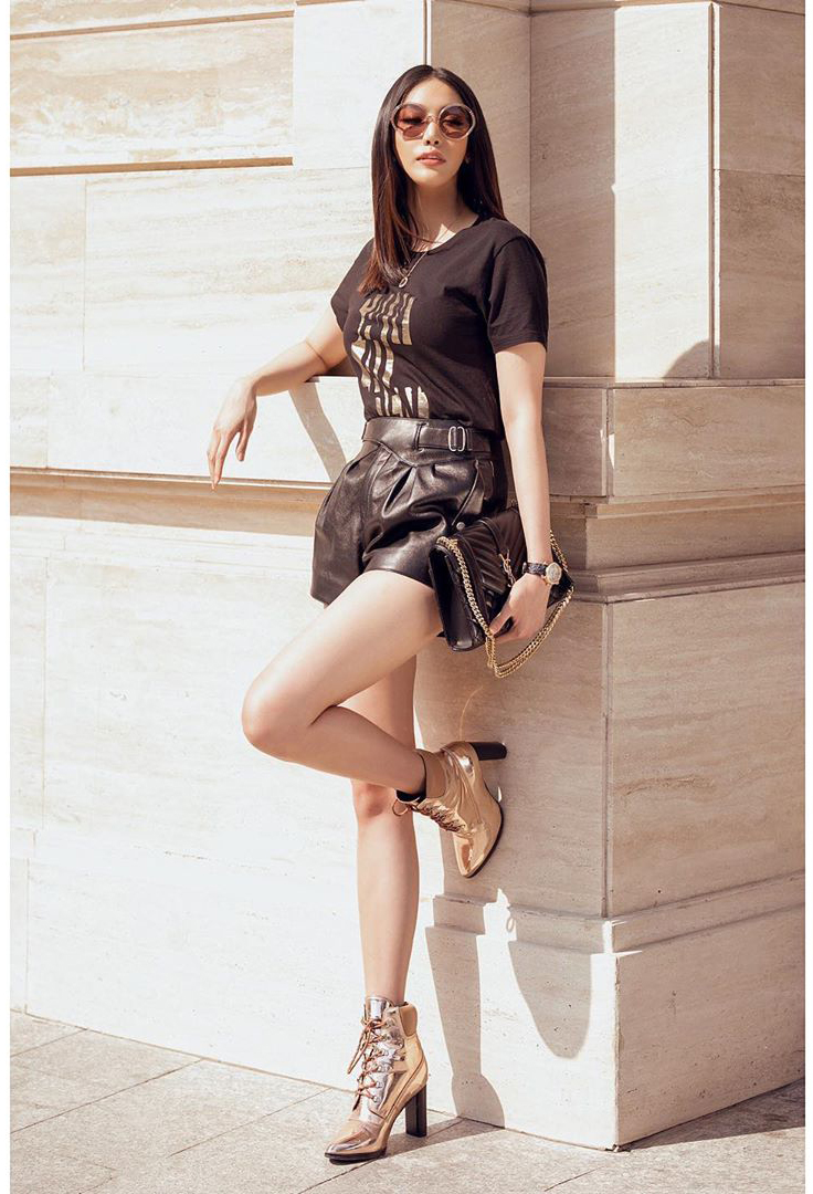 Siêu mẫu Lan Khuê diện street-style cực ngầu và cá tính. Người đẹp gây ấn tượng bởi lối trang điểm đậm sắc sảo.