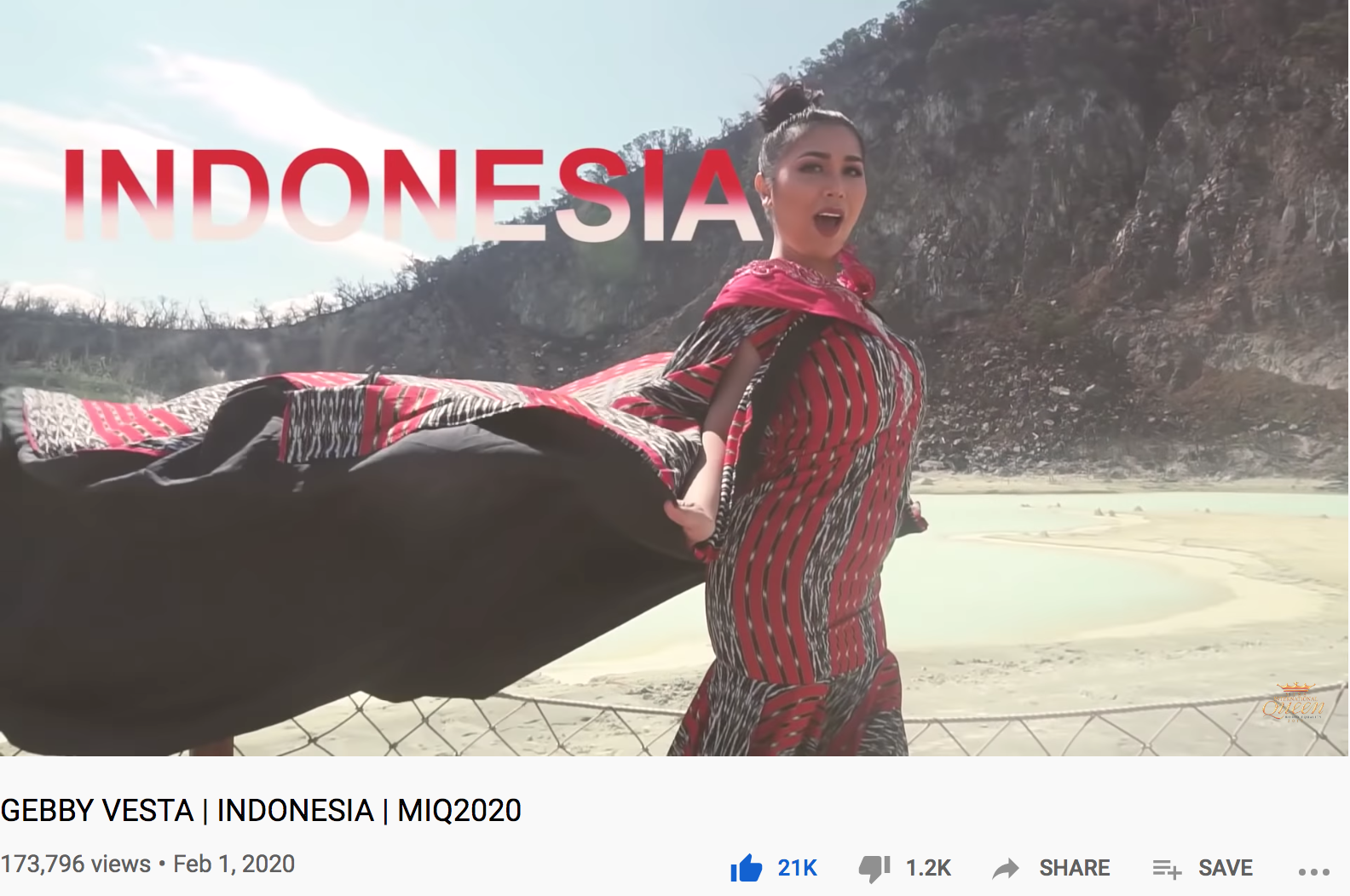 Tại cuộc thi Miss International Queen 2020, thí sinh có clip giới thiệu được yêu thích và chia sẻ cao nhất trên YouTube không chỉ giành được giải thưởng phụ Best Introductory Video mà còn xuất sắc có mặt trong Top 12 chung cuộc. Vì vậy, vị trí đứng đầu của Indonesia lần này mang đến cho người đẹp nhiều cơ hội hơn.