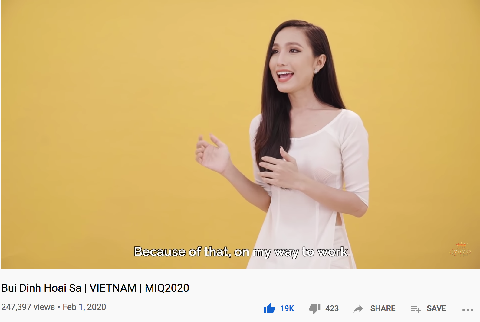Clip giới thiệu của Hoài Sa tại Miss International Queen 2020.