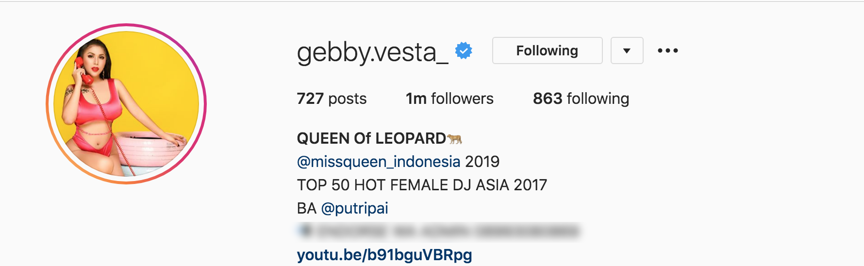 Người đẹp chuyển giới Indonesia là một trong những thí sinh hot nhất trên Instagram với 1 triệu lượt theo dõi.