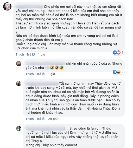 Hoàng Thùy một lần nữa bị đem lên bàn cân so sánh với hoa hậu H'Hen Niê về phong cách: “chị Hen rất phá cách và luôn làm mới mình nên mỗi lần xuất hiện đều có cái để fan mong chờ”. Mặc dù đây không phải lần đầu tiên hai người đẹp bị đặt lên bàn cân với nhau nhưng đến thời điểm hiện tại, sau khi hoàn thành 2 năm nhiệm kì, mỗi người đẹp có một định hướng, một hình ảnh riêng nhưng vẫn bị gán ghép cùng nhau thật sự là một điều khó hiểu?