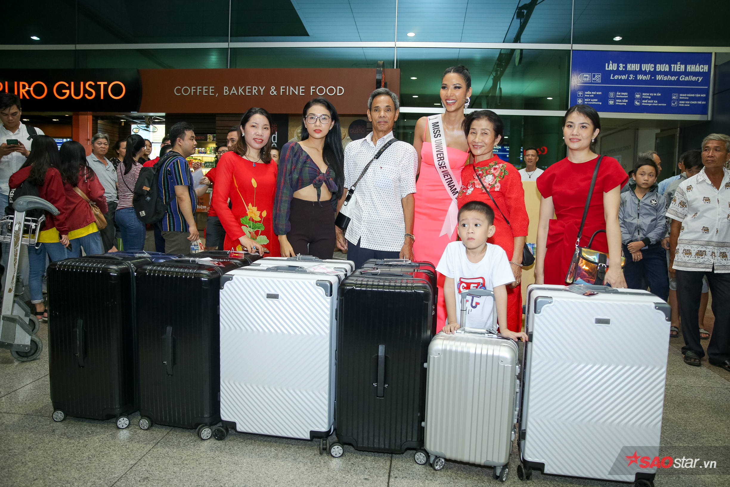 Lên đường sang Mỹ “chinh chiến” tại đấu trường nhan sắc Miss Universe 2019, á hậu Hoàng Thùy mang theo 12 kiện hành lý bao gồm 9 vali chứa gần 100 bộ áo váy, 3 kiện đựng trang phục dân tộc, quà tặng dành cho các thí sinh Hoa hậu Hoàn vũ năm nay.
